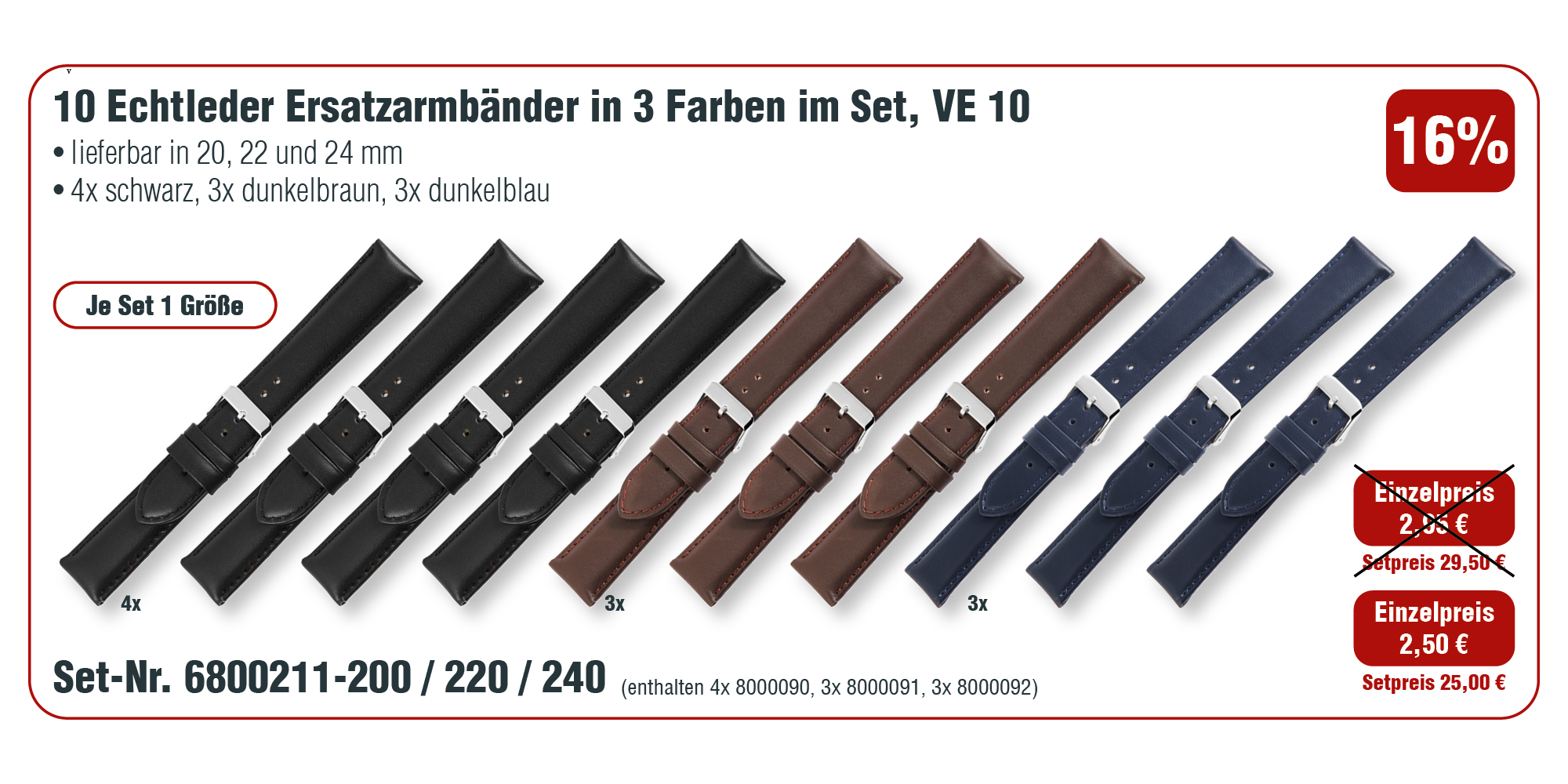 Das dunkelblaue Uhrenarmband, mit ebenfalls dunkelblauer Naht, wurde aus Echtleder gefertigt und es hat eine Anstoßbreite von 20 mm. Der Schließenanstoß ist 2 mm schmaler als die Anstoßbreite, da das Armband dort schmaler zu läuft. Die Gesamtlänge des Bandes beträgt 22 cm und die Materialstärke beträgt 5 mm. Das Ersatzarmband lässt sich mit einer silberfarbenen, hochglanzpolierten Dornschließe öffnen und schließen. Das glänzende Finish in Kombination mit dem glatten Lederband unterstreicht das schöne Design des Uhrenarmbandes und sorgt für ein schnelles und leichthändiges An- und Ablegen.