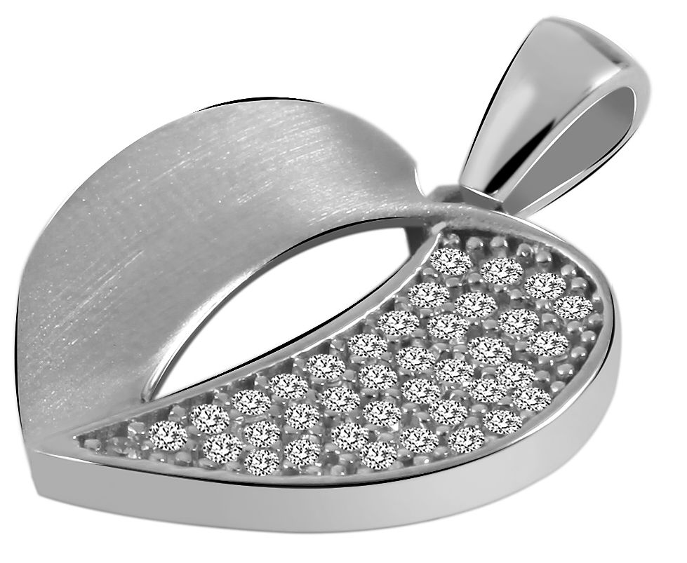 Der Kettenanhänger in Form eines Herzens wurde aus 333er Gold hergestellt. Der Anhänger ist Weißgold und zusätzlich mit 38 funkelnden Zirkoniasteinen auf der rechten Herzhälfte verziert. Das Oberflächenfinish ist mattiert und sorgt dadurch für eine besondere Optik. Die linke Herzhälfte bietet genug Fläche um mit persönlichen Gravuren versehen zu werden. Aufgrund einer ovalen Öse lässt sich dieser Anhänger beliebig an verschiedensten Ketten anbringen. Bitte beachten Sie dabei, dass die Halskette nicht im Lieferumfang enthalten ist. Dieser Schmuckanhänger eignet sich ideal als personalisiertes Geschenk um einem Herzensmenschen eine Freude zu bereiten und ihm dadurch eine ganz persönliche Botschaft zu übermitteln. Die Maße ergeben sich aus einer Länge von 16 mm, einer Breite von 15,5 mm und einer Materialstärke von 2,5 mm.