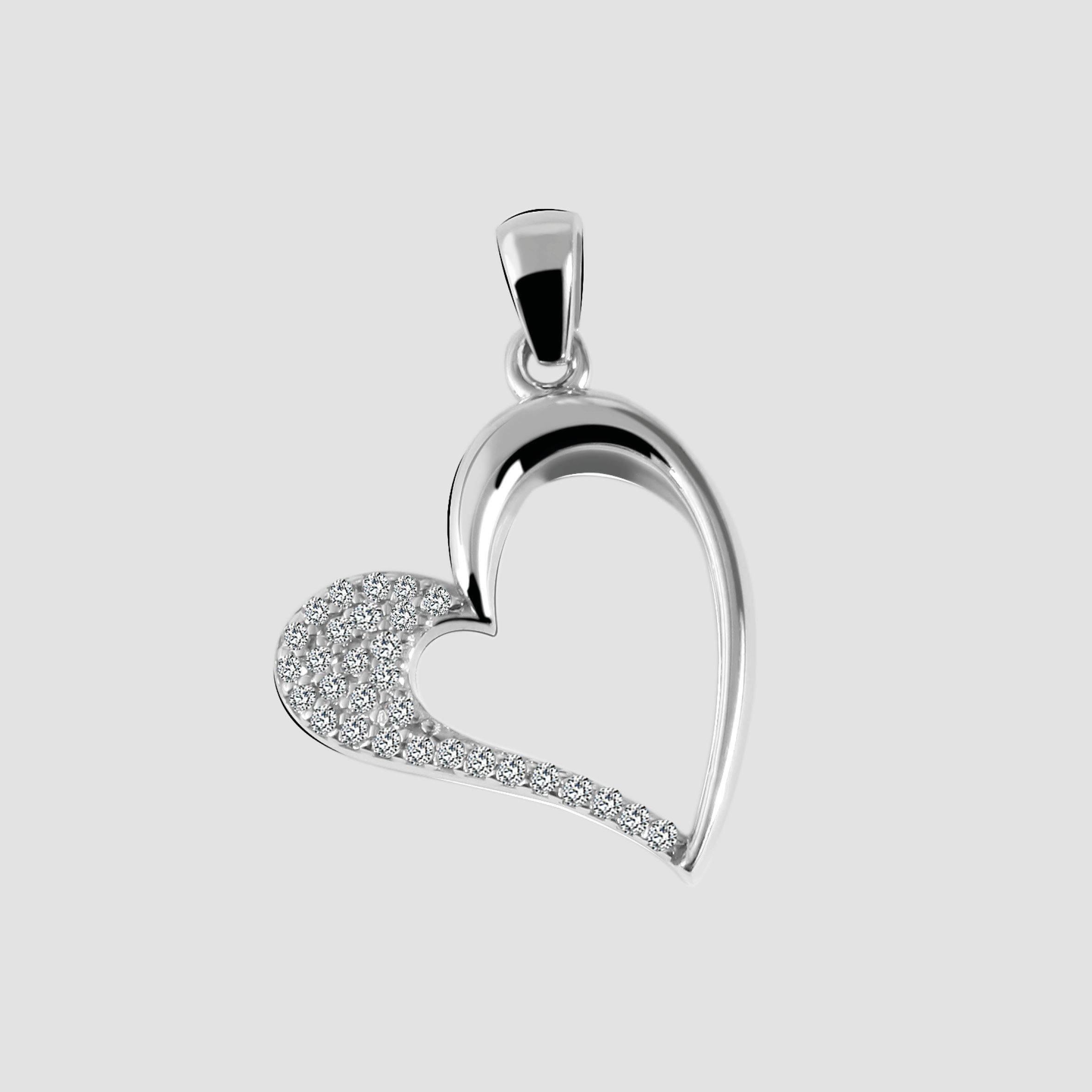 Der herzförmige Kettenanhänger für Damen wurde aus 333er Gold hergestellt. Der Anhänger ist Weißgold und zusätzlich mit 29 funkelnden Zirkoniasteinen verziert. Aufgrund einer ovalen Öse lässt sich dieser Anhänger beliebig an verschiedensten Ketten anbringen. Bitte beachten Sie dabei, dass die Halskette nicht im Lieferumfang enthalten ist. Der gesamte Anhänger ist rhodiniert. Das heißt, er ist mit einer hochwertigen Edelmetallschicht überzogen, die den Weißton nochmal mehr hervorhebt. Dieser Schmuckanhänger ist die ideale Geschenkidee für die Liebste. Beispielsweise zum Valentinstag, zum Geburtstag oder zu Weihnachten. Verschenken Sie mit diesem Anhänger eine ganz persönliche Botschaft. Die Maße ergeben sich aus einer Länge von 18 mm, einer Breite von 18 mm und einer Materialstärke von 3 mm.
