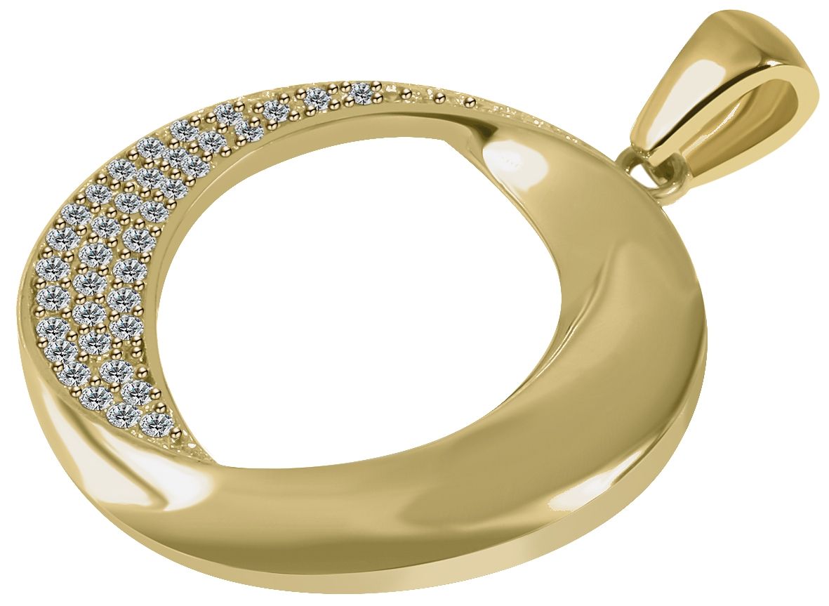 Der runde Kettenanhänger wurde aus hochwertigem 333/- Gelbgold hergestellt und ist mit funkelndem Zirkoniabesatz verziert. Er hat einen Durchmesser von 21,5 mm und eine Materialstärke von 2,5 mm. Aufgrund der ovalen Öse lässt sich dieser Anhänger beliebig an verschiedensten Ketten anbringen, um so im Handumdrehen einen neuen Look zu kreieren. Bitte beachten Sie dabei, dass die Halskette nicht im Lieferumfang enthalten ist. Das Design des Anhängers zeichnet sich durch elegantes und zeitloses Aussehen aus. Der weiße Besatz auf dem polierten Oberflächenfinish bildet dabei einen ansprechenden Kontrast und gibt der Optik eine luxuriöse Note. Rundum ist dieser Schmuckanhänger ein tolles und zeitloses Accessoire, welches sich zu jedem Anlass tragen lässt und dezent jedem Dekolleté schmeichelt.