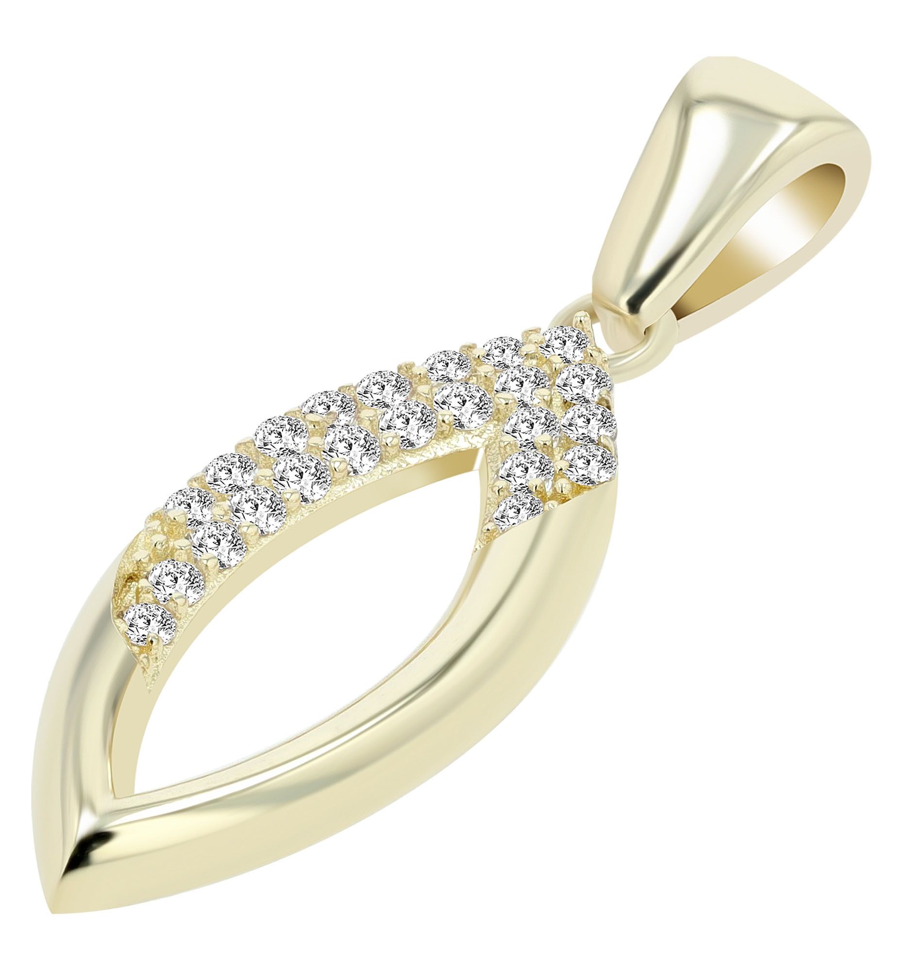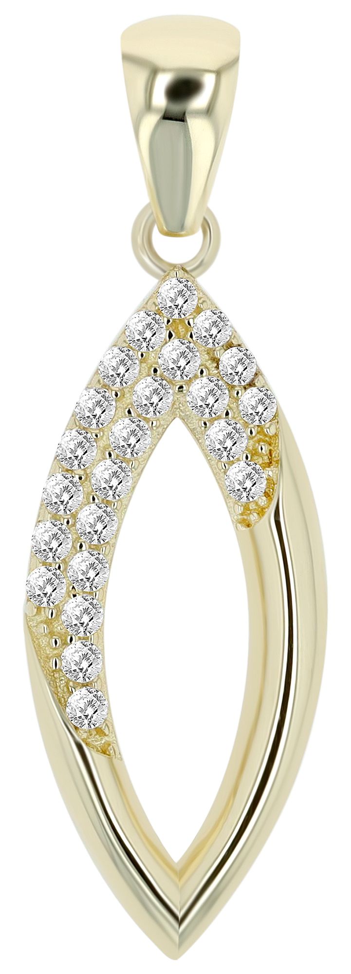 Angefertigt aus 333er Gold strahlt dieser Kettenanhänger eine zeitlose Schönheit aus. Poliert strahlt dieses Schmuckstück eine zeitlose Schönheit aus. Mit seinen Maßen von 18 x 8 x 2 mm bietet der Kettenanhänger eine dezente Präsenz, die dennoch beachtenswert ist. Das glänzende Gold und die warme Farbgebung verleihen dem Anhänger eine wunderschöne Ausstrahlung, die alle Blicke auf sich zieht. Die kunstvoll eingefassten 27 Zirkonia fangen das Licht ein und reflektieren dieses auf wundersame Weise. Dank der Öse kann der Kettenanhänger mühelos an verschiedenen Kettenarten befestigt werden. Mit dem dezenten und zeitlosen Design ist der Kettenanhänger eine tolle Ergänzung zu jedem Outfit und auch ein stilsicherer Begleiter zu jedem Anlass.