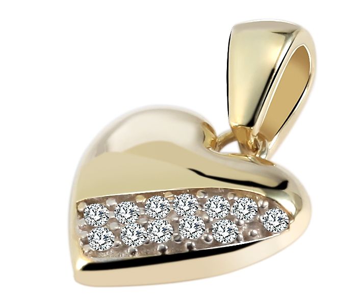 Der Kettenanhänger in Form eines Herzens wurde aus 333er Gold hergestellt. Der Anhänger ist Gelbgold und zusätzlich mit 12 diagonal angeordneten, funkelnden Zirkoniasteinen verziert. Der weiße Besatz bildet dabei einen ansprechenden Kontrast. Zudem präsentiert sich der Herzanhänger mit einem polierten Oberflächenfinish und kann individuell mit kleinen persönlichen Gravuren gestaltet werden. Dadurch eignet er sich ideal als personalisiertes Geschenk für einen Herzensmenschen. Aufgrund einer ovalen Öse lässt sich dieser Anhänger beliebig an verschiedensten Ketten anbringen. Bitte beachten Sie dabei, dass die Halskette nicht im Lieferumfang enthalten ist. Rundum ist dieser Schmuckanhänger ein tolles und zeitloses Accessoire, was sich jedem Outfit anpasst. Die Maße ergeben sich aus einer Länge von 11 mm, einer Breite von 10 mm und einer Materialstärke von 1 mm.