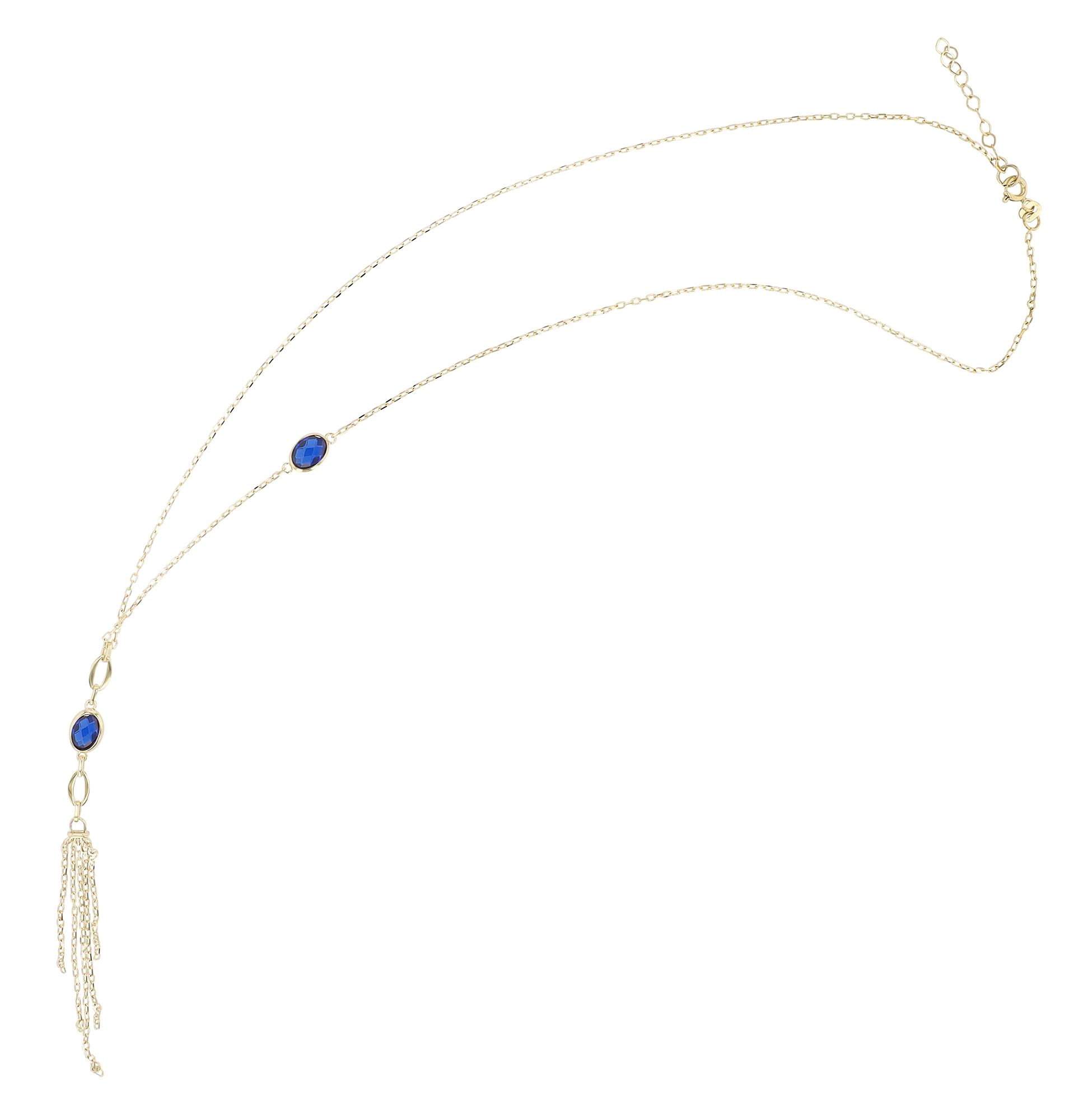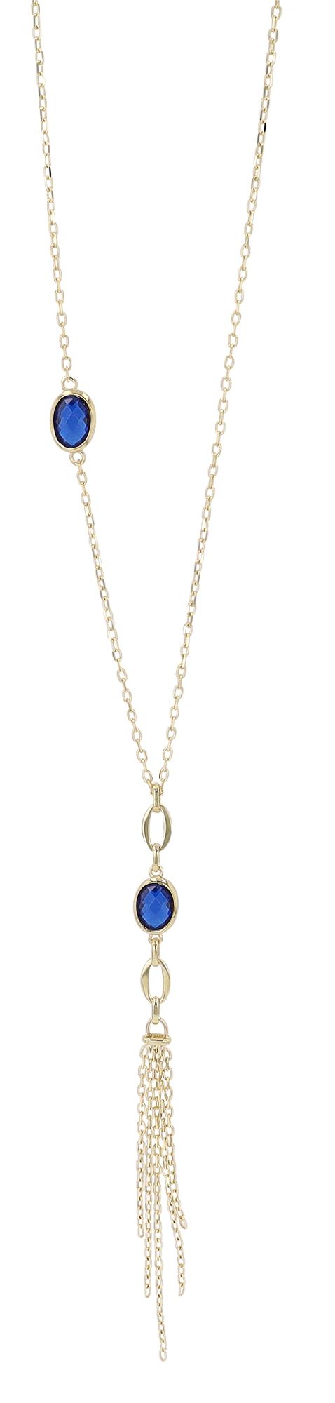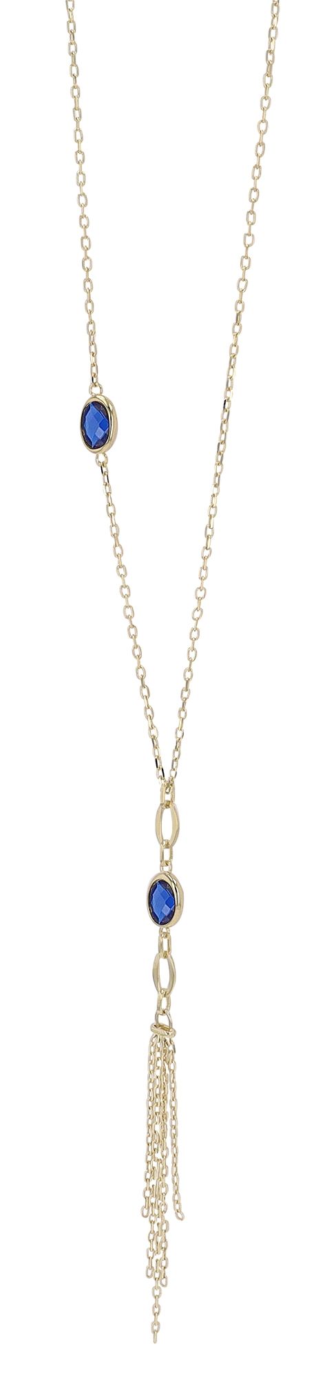 Produktinformationen "333/- Gold "Baila" Halskette mit blauem Besatz und zarten Kettenfransen, 8Karat, Gelbgold"