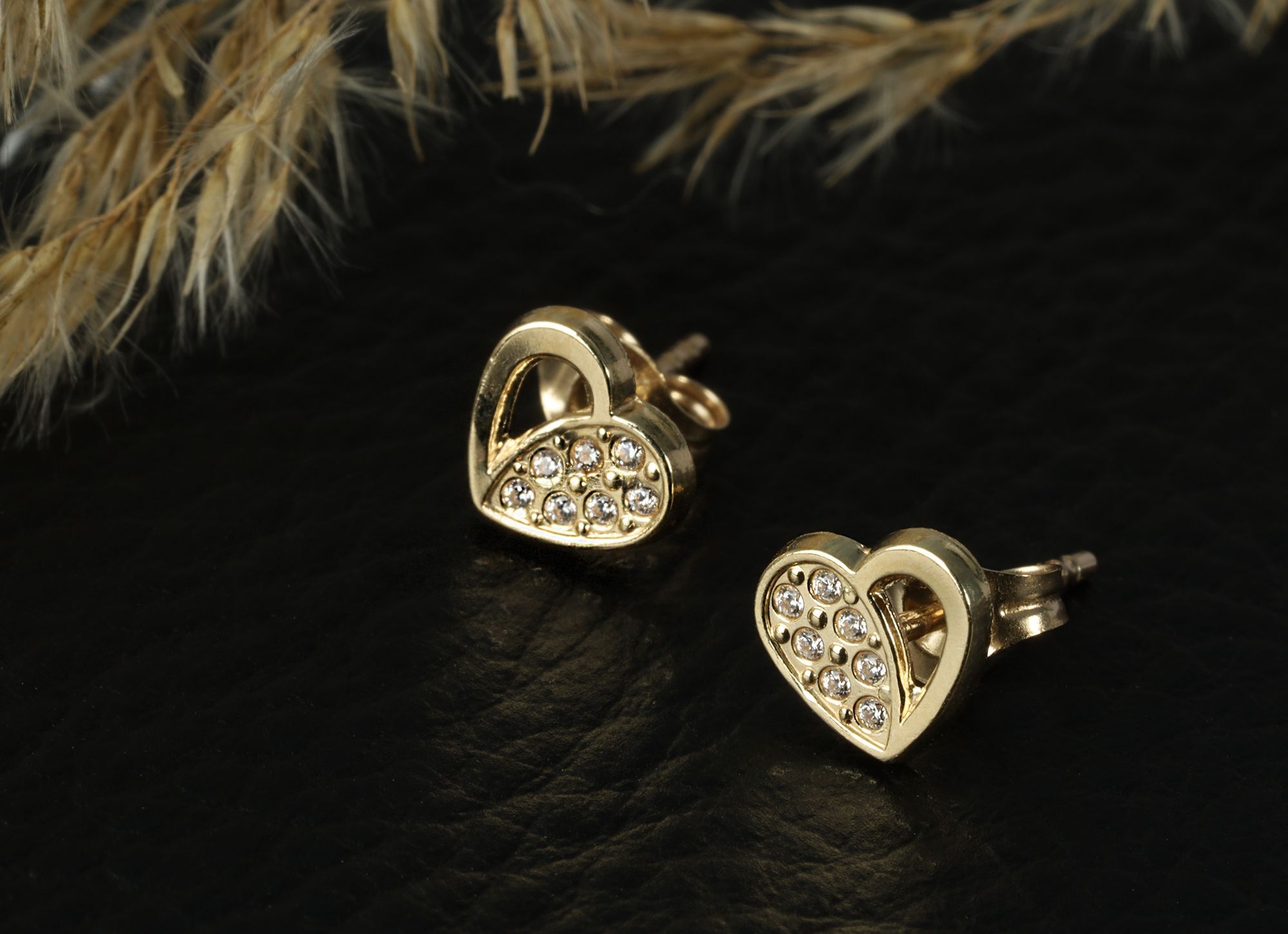 Diese bezaubernden Herz-Ohrstecker aus 333er Gelbgold sind mit funkelnden Zirkonia besetzt und verleihen dem Look einen Hauch von Eleganz und Romantik. Das hochwertige Material und die sorgfältige Verarbeitung garantieren ein langlebiges Schmuckstück. Mit ihrer praktischen Flügelschraube sind sie einfach zu tragen und bieten den ganzen Tag über ein sicheres und angenehmes Tragegefühl. Egal ob als Geschenk oder für die Schmucksammlung, diese Herz-Ohrstecker sind ein zeitloses Accessoire, das zu jedem Anlass getragen werden kann.