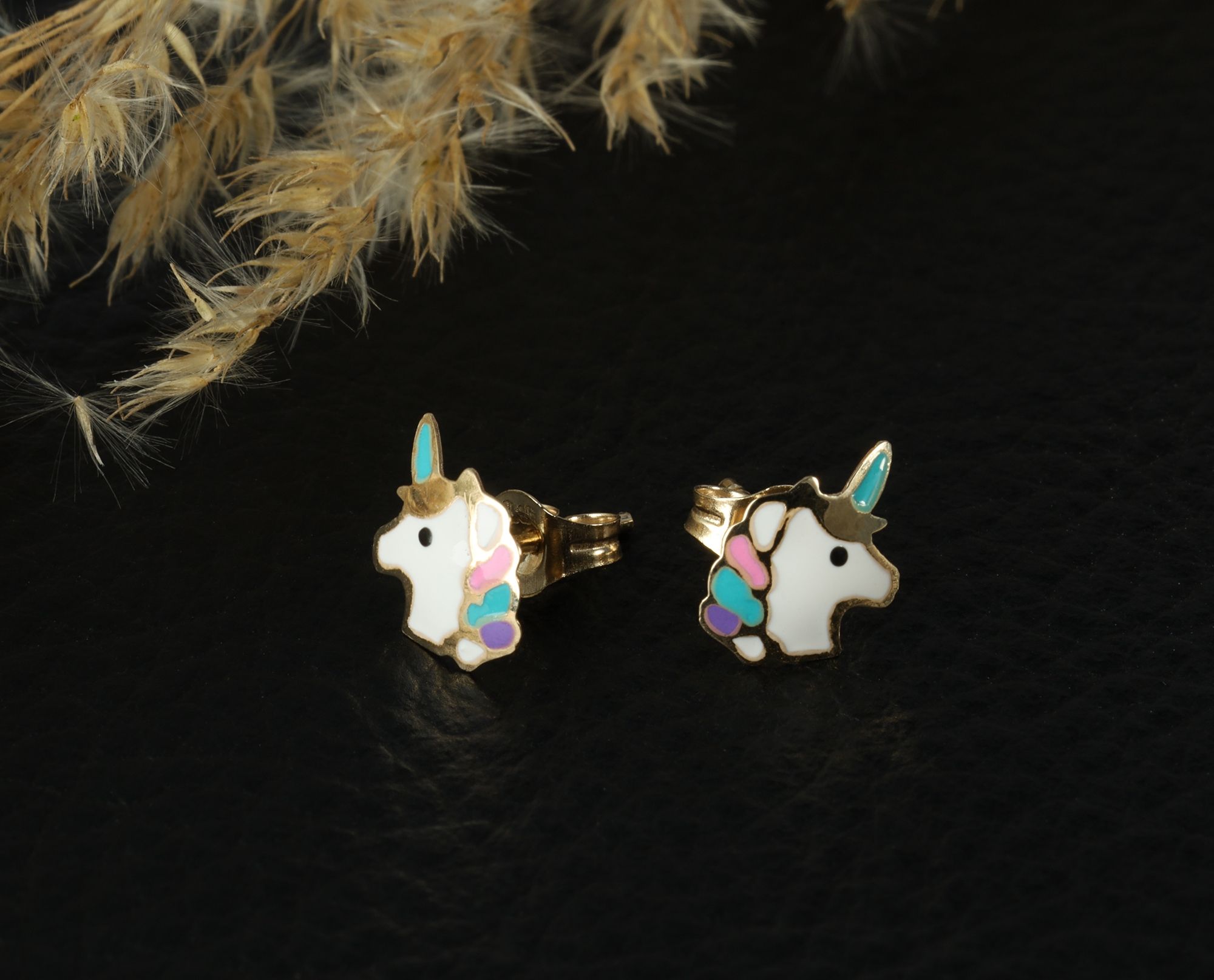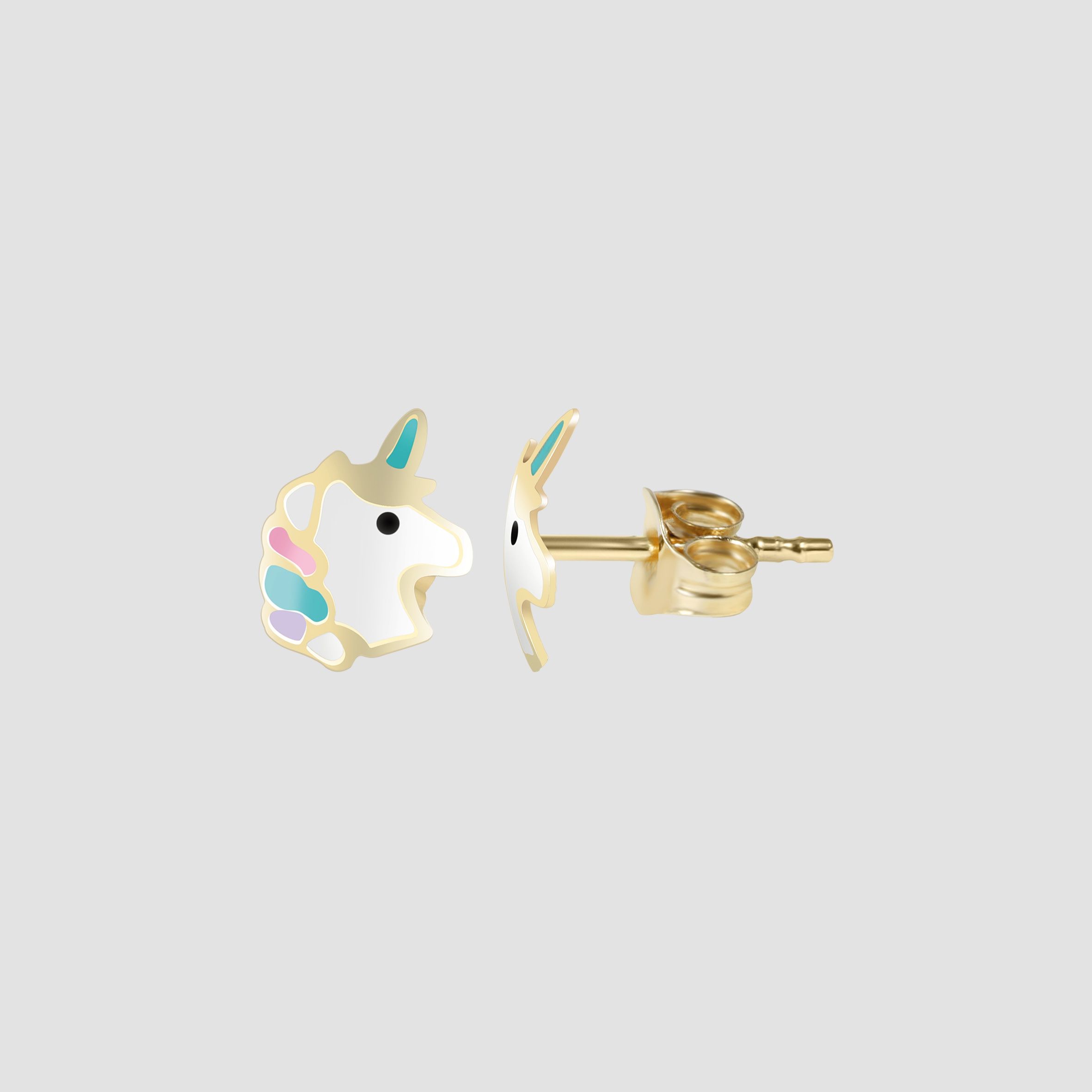 Produktinformationen "333/- Gold "Laluni" Ohrstecker, Einhorn mit Emaille, Gelbgold, 8 Karat, Kinder"