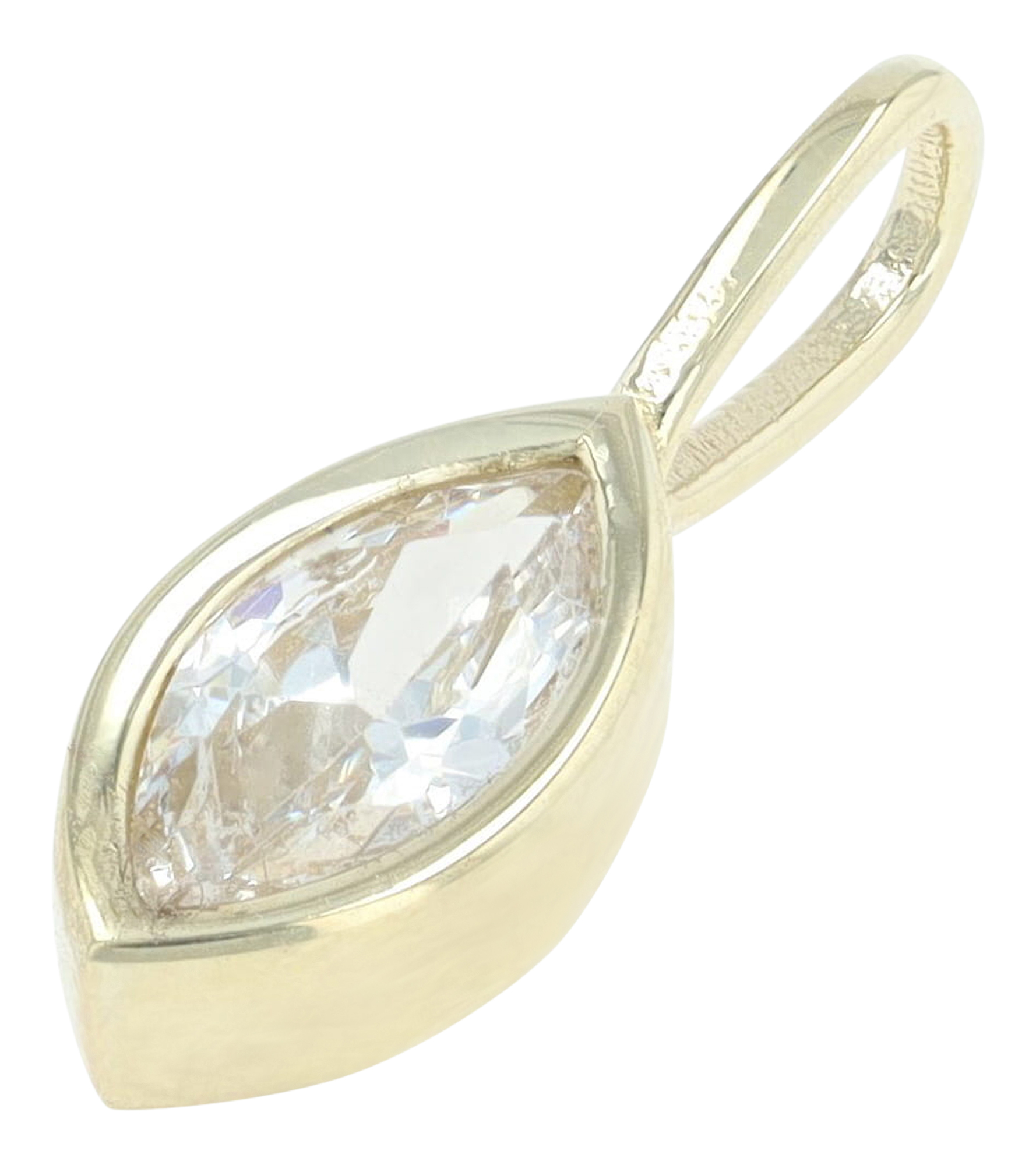 Mit einer Größe von 11 x 5,5 x 3 mm wirkt der Kettenanhänger dezent und doch präsent an Ihrer Halskette. Das Schmuckstück ist mit einer festen Öse ausgestattet, die für einen stabilen Sitz und eine ruhige Lage am Dekolleté sorgt. Das polierte Gelbgold sorgt für eine edle Spiegelung und unterstreicht die Wertigkeit des massiven Echtgoldes, während ein zentral gefasster Zirkonia im Marquise-Schliff das Licht einfängt und so für ein beeindruckendes Funkeln sorgt.