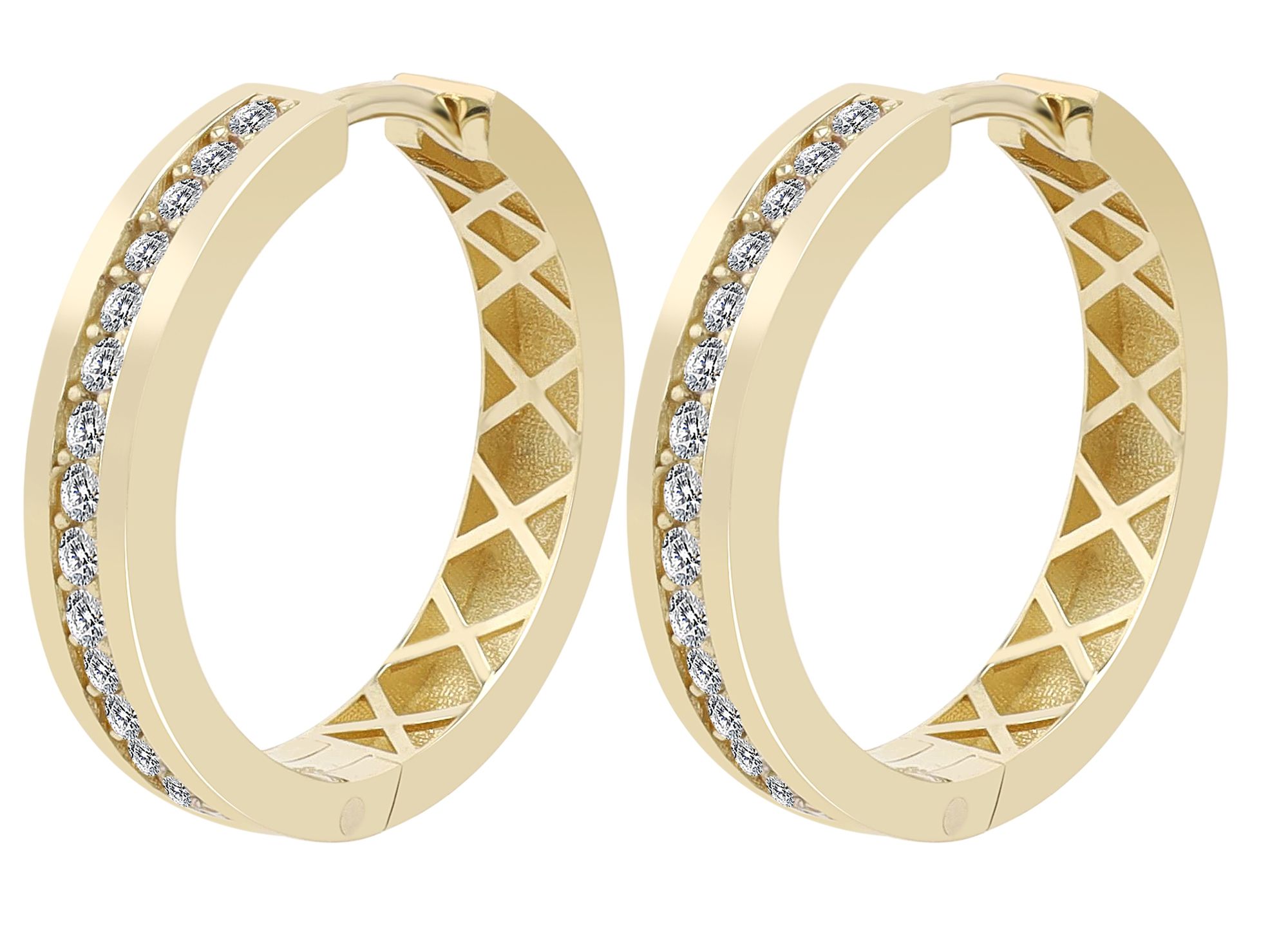 Mit einem Durchmesser von 17 mm, einer Breite von 4 mm und einer Stärke von 2 mm sind diese Creolen eine harmonische Kombination aus Größe und Eleganz. Sie sind nicht zu groß, um aufdringlich zu wirken, aber groß genug, um Aufmerksamkeit zu erregen. Die wahre Pracht dieser Ohrringe zeigt sich auf der Vorderseite, wo funkelnde Zirkoniasteine das Licht einfangen und reflektieren.
