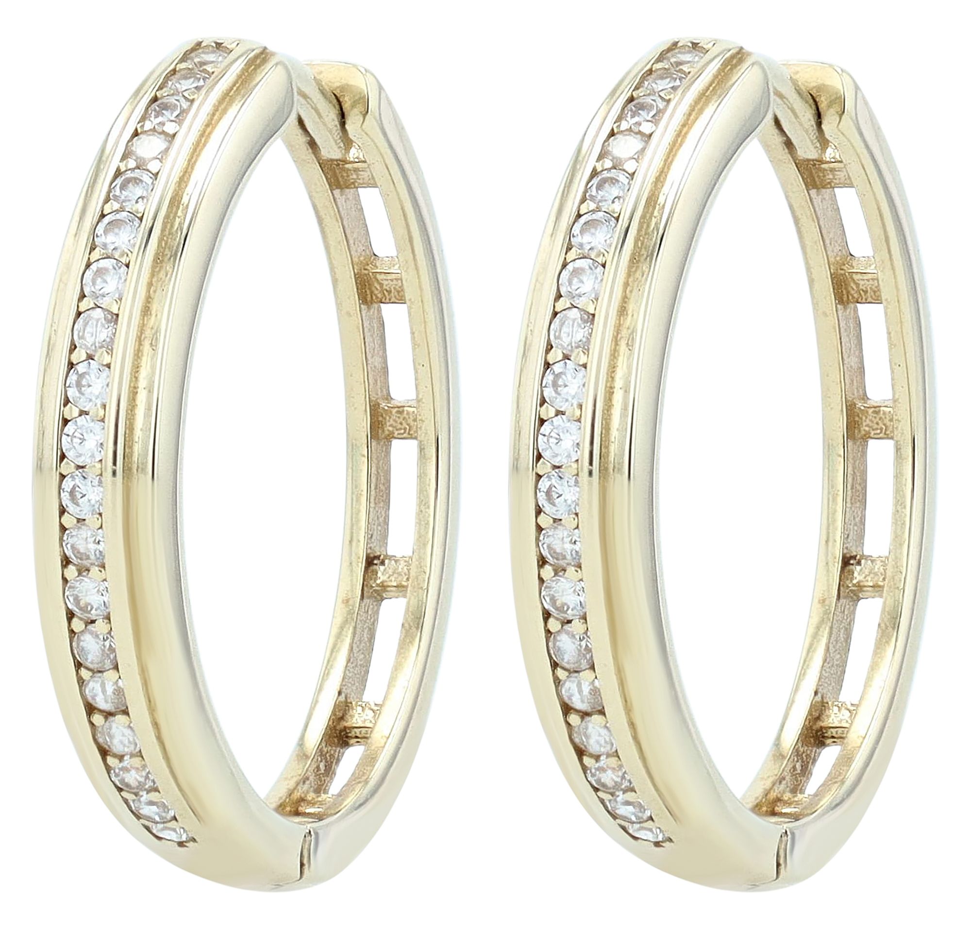 Mit einem Durchmesser von 17,5 mm, einer Breite von 3,5 mm und einer Stärke von 2 mm sind diese Creolen eine harmonische Kombination aus Größe und Eleganz. Sie sind nicht zu groß, um aufdringlich zu wirken, aber groß genug, um Aufmerksamkeit zu erregen. Die wahre Pracht dieser Ohrringe zeigt sich auf der Vorderseite, wo funkelnde Zirkoniasteine das Licht einfangen und reflektieren.