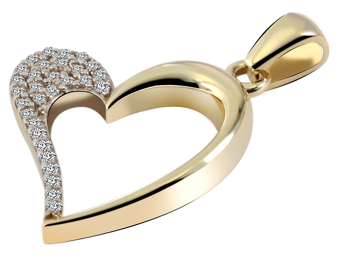 Der herzförmige Kettenanhänger für Damen wurde aus 375er Gold hergestellt. Der Anhänger ist Gelbgold und zusätzlich mit 29 funkelnden Zirkoniasteinen verziert. Der weiße Besatz bildet dabei einen ansprechenden Kontrast. Aufgrund einer ovalen Öse lässt sich dieser Anhänger beliebig an verschiedensten Ketten anbringen. Bitte beachten Sie dabei, dass die Halskette nicht im Lieferumfang enthalten ist. Dieser Schmuckanhänger ist die ideale Geschenkidee für die Liebste. Beispielsweise zum Valentinstag, zum Geburtstag oder zu Weihnachten. Verschenken Sie mit diesem Anhänger eine ganz persönliche Botschaft. Die Maße ergeben sich aus einer Länge von 18 mm, einer Breite von 18 mm und einer Materialstärke von 3 mm.