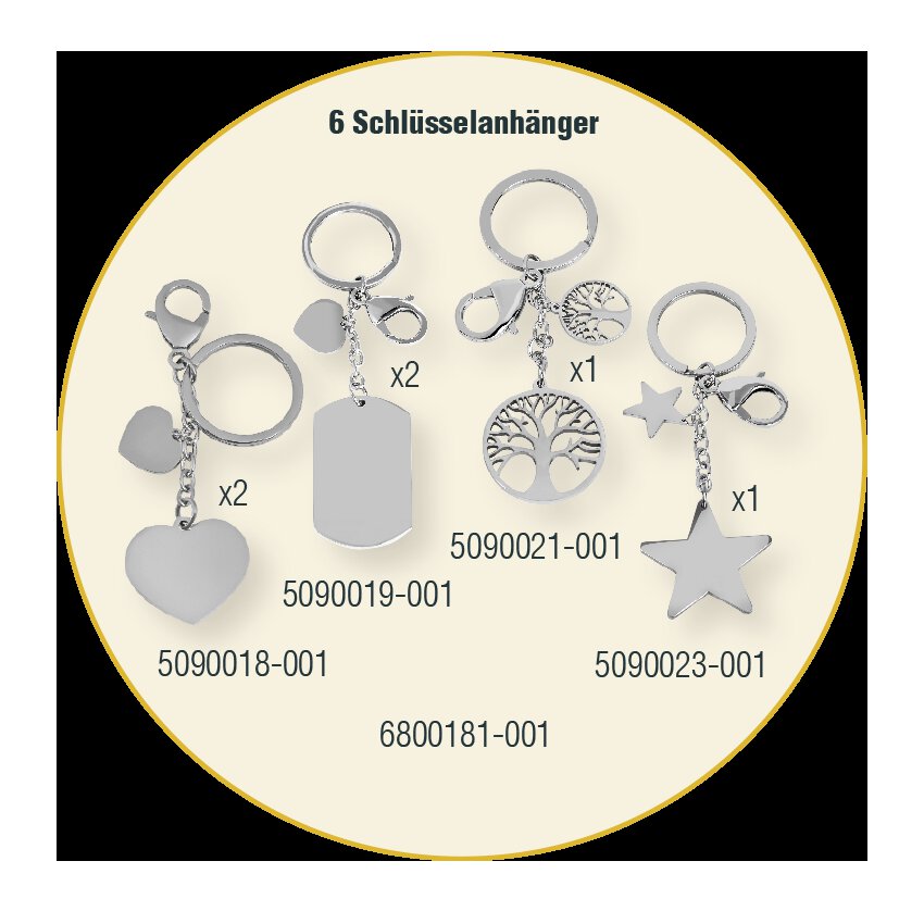 Der silberfarbene Schlüsselanhänger der Marke Akzent ist hochglanzpoliert und aus Edelstahl gefertigt. Er eignet sich perfekt als personalisiertes Geschenk, da der Anhänger ein hochglanzpolierter und beidseitig gravurfähiger Stern ist, der eine Länge von 33 mm, eine Breite von 33 mm und eine Materialstärke von 2 mm hat. Mit einer 45 mm langen Rundankerkette, wird der Anhänger mit dem Schlüsselring befestigt. Dieser hat einen Durchmesser von 30 mm und ist ebenfalls aus Edelstahl gefertigt und sehr robust. An der Kette hängt außerdem der gleiche Anhänger, der aber eine Länge von 17 mm und eine Materialstärke von 1,5 mm hat . Er ist ebenfalls aus Edelstahl, hochglanzpoliert, silberfarbig und beidseitig gravurfähig.