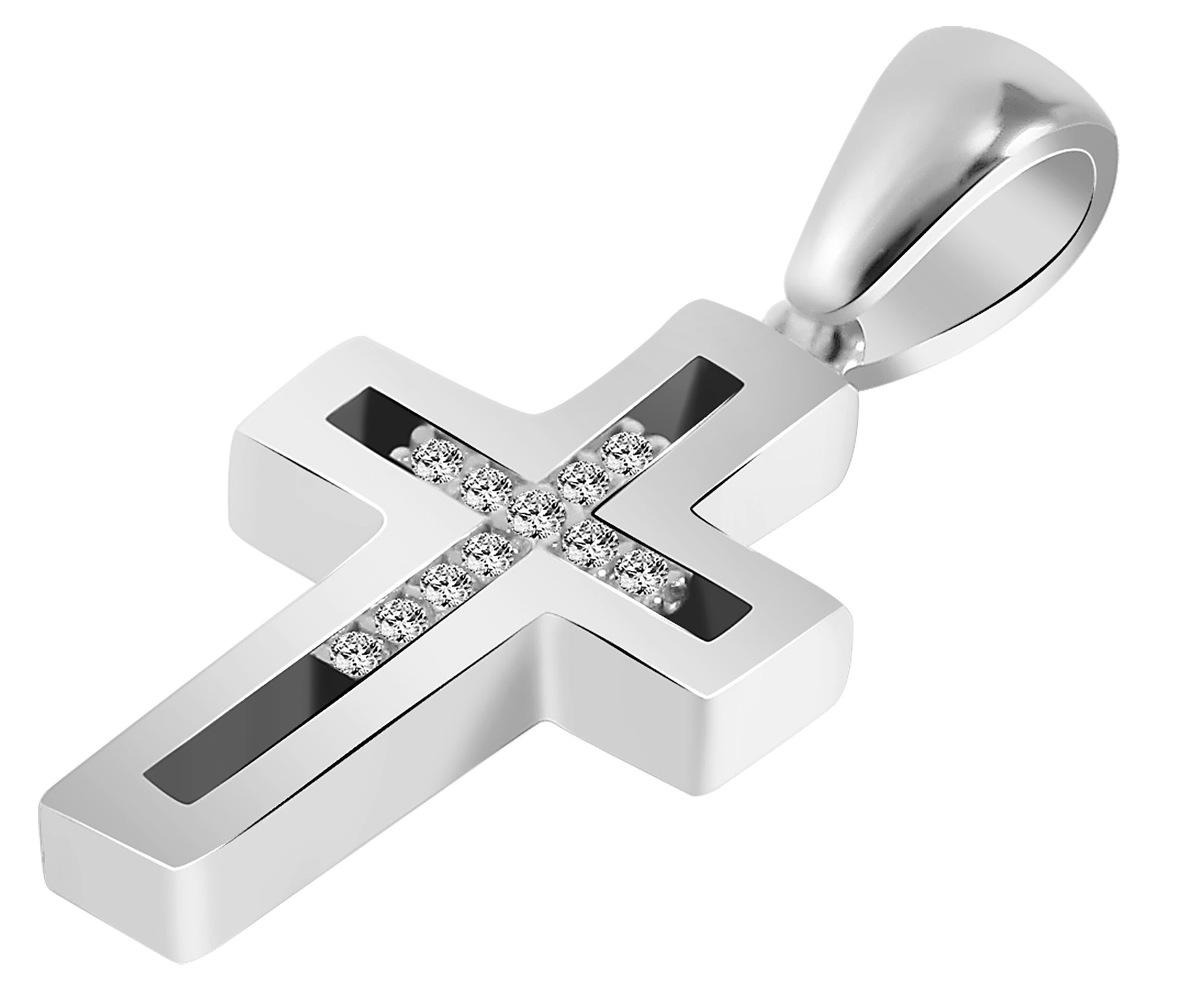 Der Kettenanhänger in Form eines Kreuzes wurde aus 925/- Sterlingsilber hergestellt. Der gesamte Anhänger ist rhodiniert. Das heißt, er ist mit einer hochwertigen Edelmetallschicht überzogen, die das Schmuckstück vor dem Anlaufen schützt. Außerdem hebt das Rhodium den Silberton hervor und verleiht einen perfekten Glanz. Dazu trägt auch das polierte Oberflächenfinish und die elf funkelnden Zirkoniasteine bei, die in in einer Öffnung, kreuzförmig angeordnet, ummantelt werden. Aufgrund der ovalen Öse lässt sich der Silberanhänger beliebig an verschiedensten Ketten anbringen. Bitte beachten Sie dabei, dass die Kette nicht im Lieferumfang enthalten ist. Die Maße ergeben sich aus einer Länge von 19 mm, einer Breite von 12 mm und einer Materialstärke von 2 mm. Der Anhänger eignet sich ideal zum Verschenken, beispielsweise zur Taufe, zur Kommunion oder zu Weihnachten. Dieses Produkt wird auf einem weißen Schmuckkärtchen geliefert. Es hat eine Maße von 70 x 45 mm und eignet sich ideal zum Präsentieren in dem dazu geeigneten Display oder zum Verpacken als Geschenk.