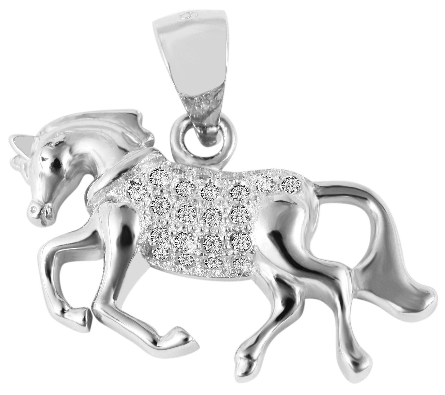 Produktinformationen "925/- Echt Silber Anhänger ohne Kette "Barbika", Pferd mit Zirkoniabesatz, 925/rhodiniert"