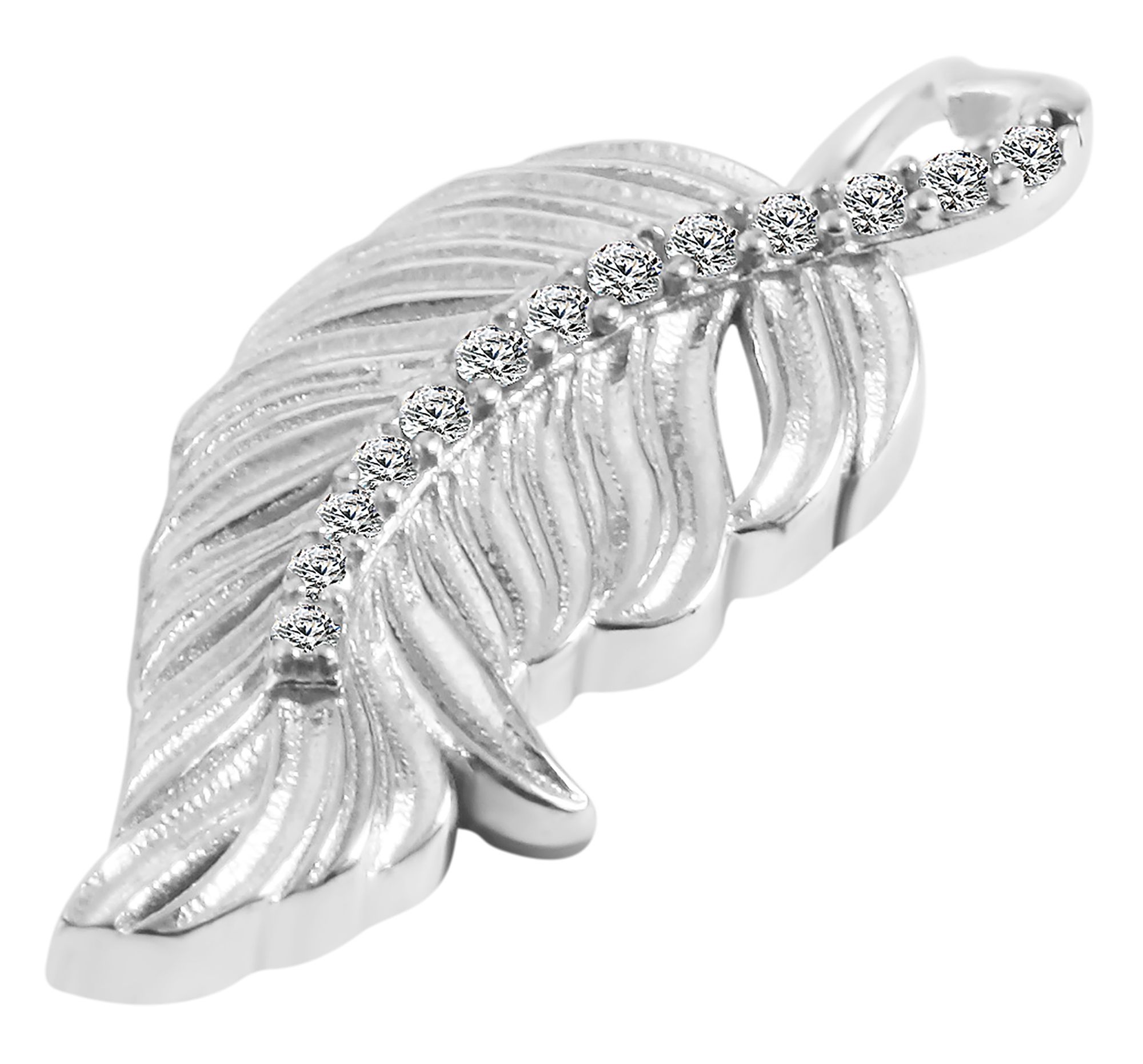 Der formschöne Kettenanhänger in Form einer Feder wurde aus 925/- Sterlingsilber hergestellt. Der gesamte Anhänger ist rhodiniert. Das heißt, er ist mit einer hochwertigen Edelmetallschicht überzogen, die das Schmuckstück vor dem Anlaufen schützt. Außerdem hebt das Rhodium den Silberton hervor und verleiht einen perfekten Glanz. Dazu tragen auch die 13 funkelnden Zirkoniasteine bei, die in geschwungener Anordnung den Feder-Anhänger zieren. Die herzförmige Kettenöse macht das Gesamtbild perfekt und lässt den Anhänger zu einem ganz besonderen Accessoire werden, welches beliebig an verschiedenen Ketten angebracht werden kann. Bitte beachten Sie dabei, dass die Kette nicht im Lieferumfang enthalten ist. Die Maße ergeben sich aus einer Länge von 25 mm, einer Breite von 10 mm und einer Materialstärke von 2 mm.