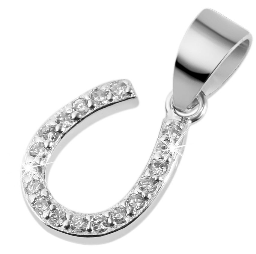 Produktinformationen "925/- Echt Silber Anhänger ohne Kette "Samah", Hufeisen mit weißen Zirkoniasteinen, 925/rhodiniert"