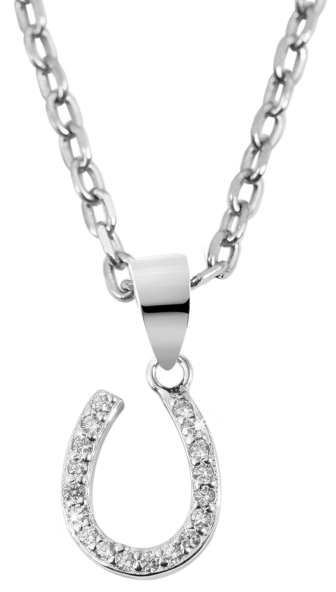 Der Kettenanhänger in Form eines Hufeisens aus 925er Sterlingsilber ist rhodiniert, somit anlaufgeschützt und mit strahlendem Glanz versehen. Das Hufeisen ist mit weißen 18 Zirkoniasteinen geschmückt. Die funkelnden Steinchen lassen den zierlichen Glücksbringer in einem eleganten Look erstrahlen. Der Silberanhänger ergibt sich aus einer Länge von 12 mm, einer Breite von 9 mm und einer Stärke von 1,5 mm. Der funkelnde Glücksbringer ist ein schönes Accessoire, das sich zu jeder Gelegenheit tragen lässt und dabei zum absoluten Blickfang wird.