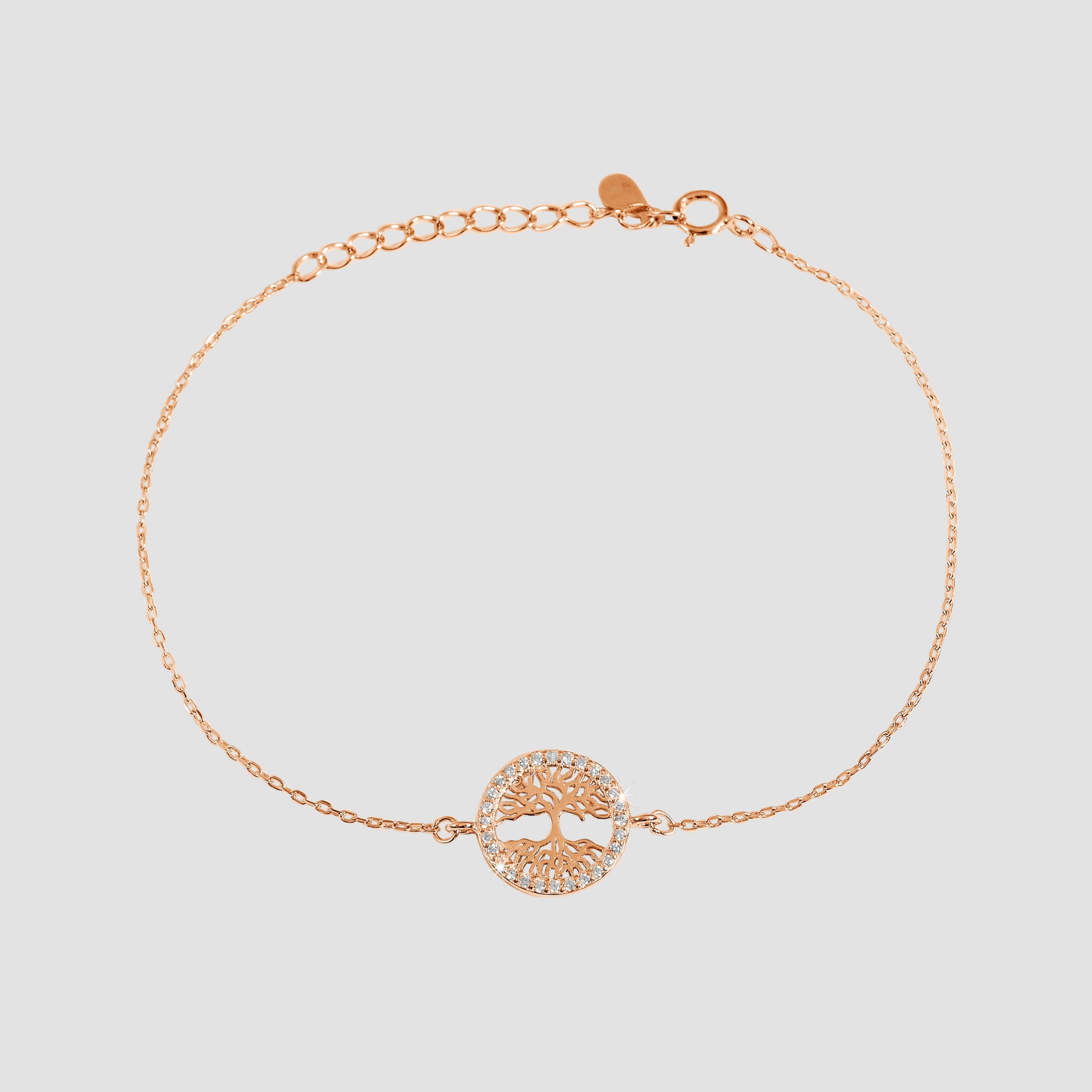 Produktinformationen "925/- Echt Silber Armband "Bina", Lebensbaum, Zirkoniabesatz, rosévergoldet"