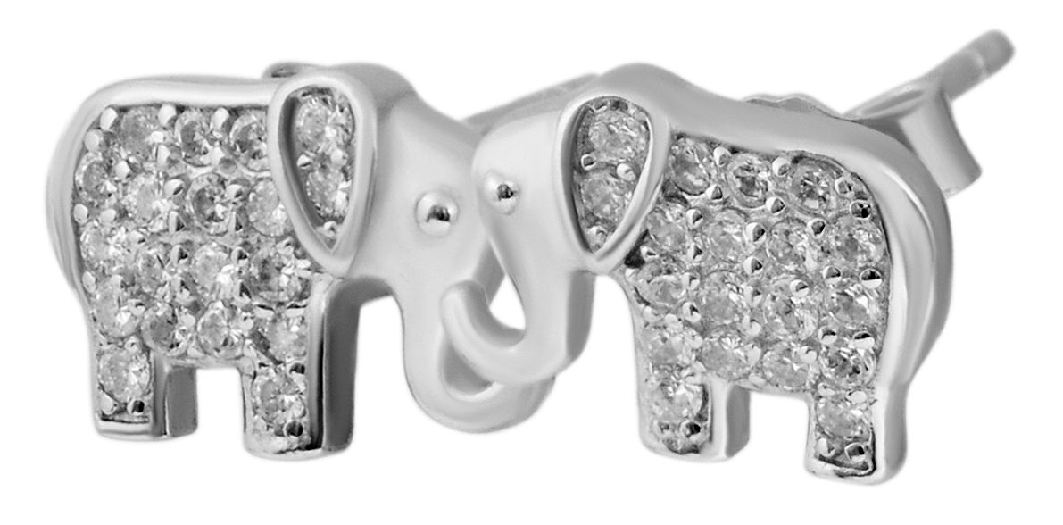 Produktinformationen "925/- Echt Silber Elefanten Schmuck Sets Anhänger "Djura" Ohrstecker mit 45 Zirkonia Steinen"