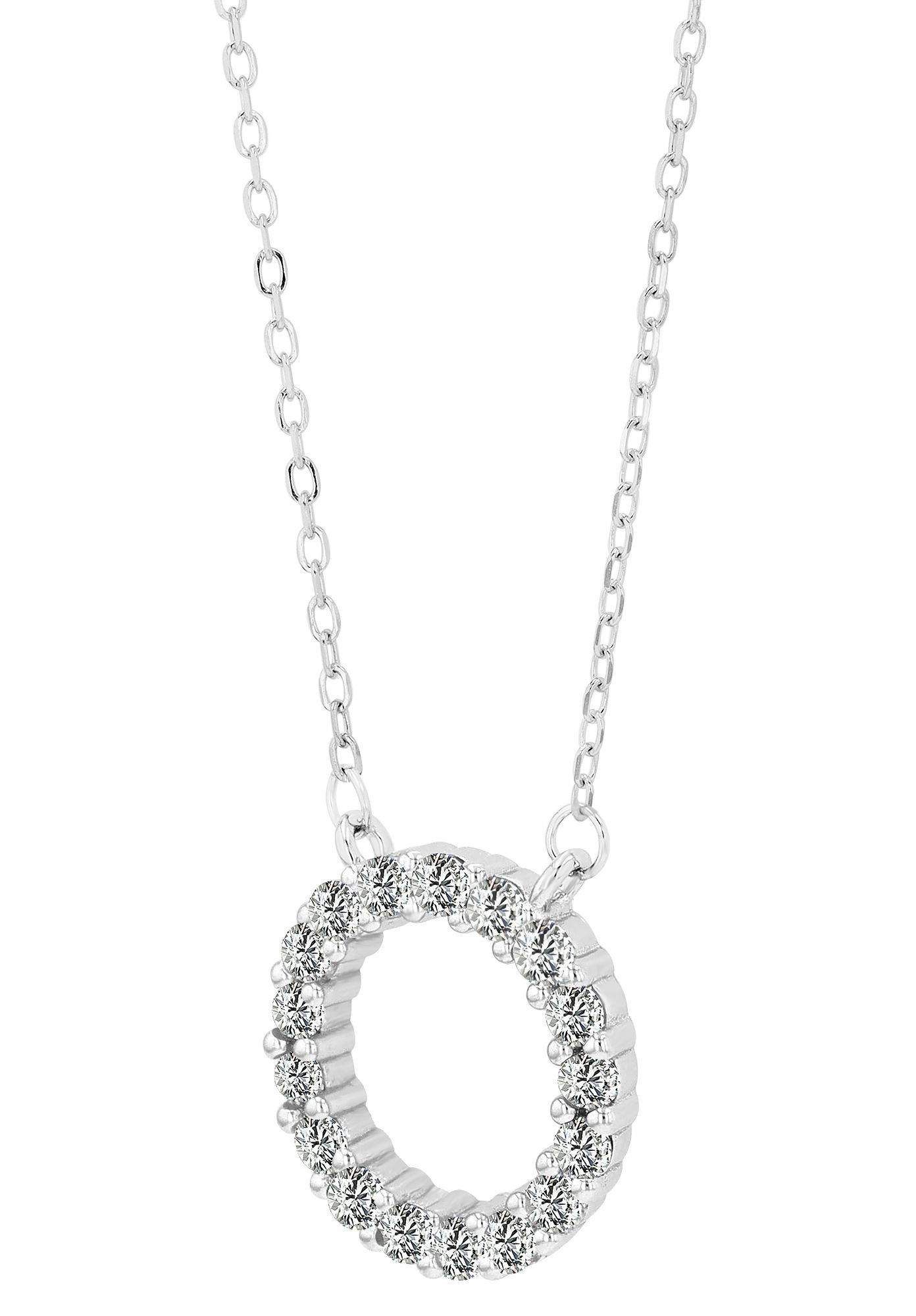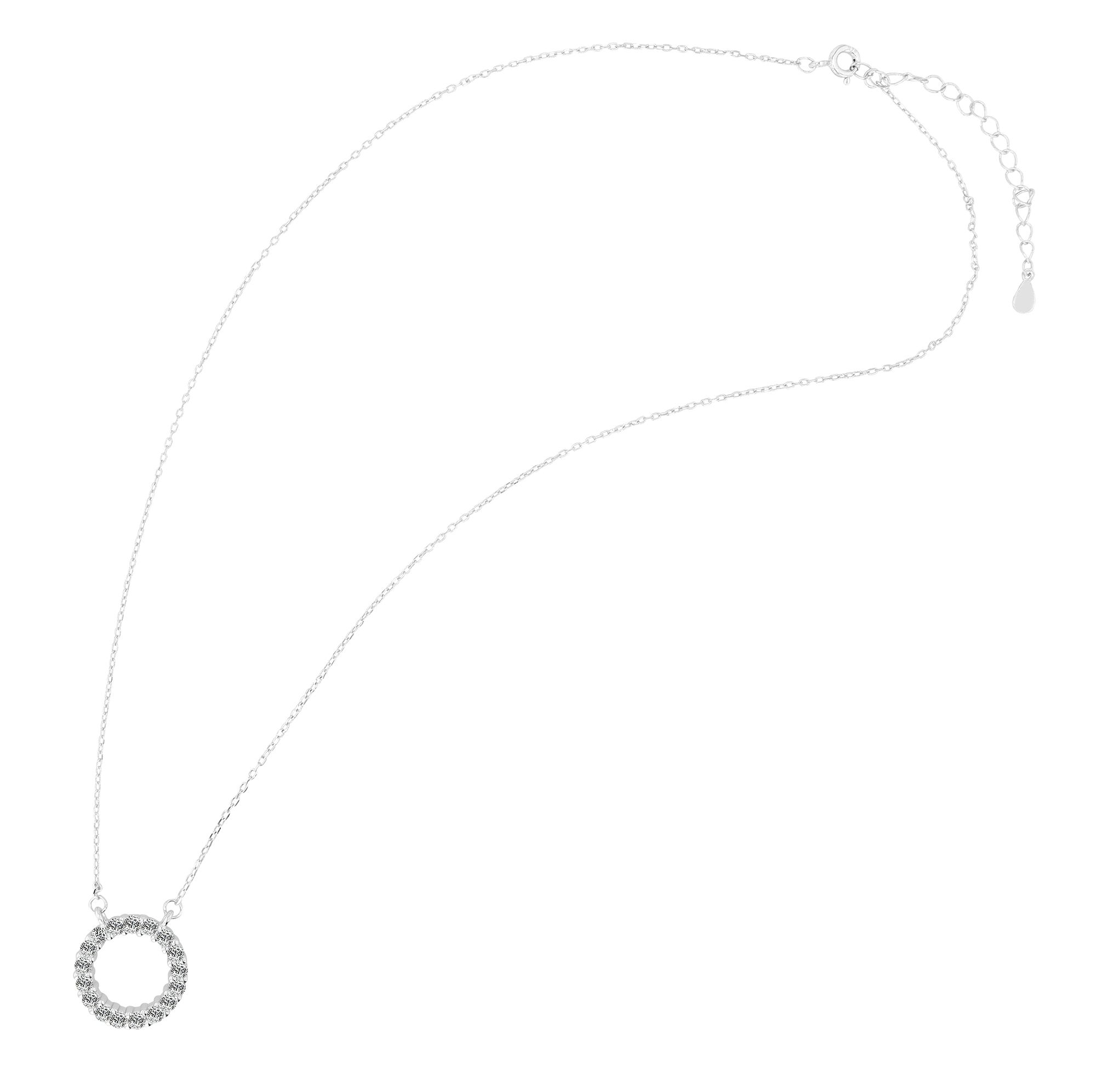 Produktinformationen "925/- Echt Silber Halskette "Melisa" mit rundem Anhänger, weißer Besatz, rhodiniert, 42+5 cm"