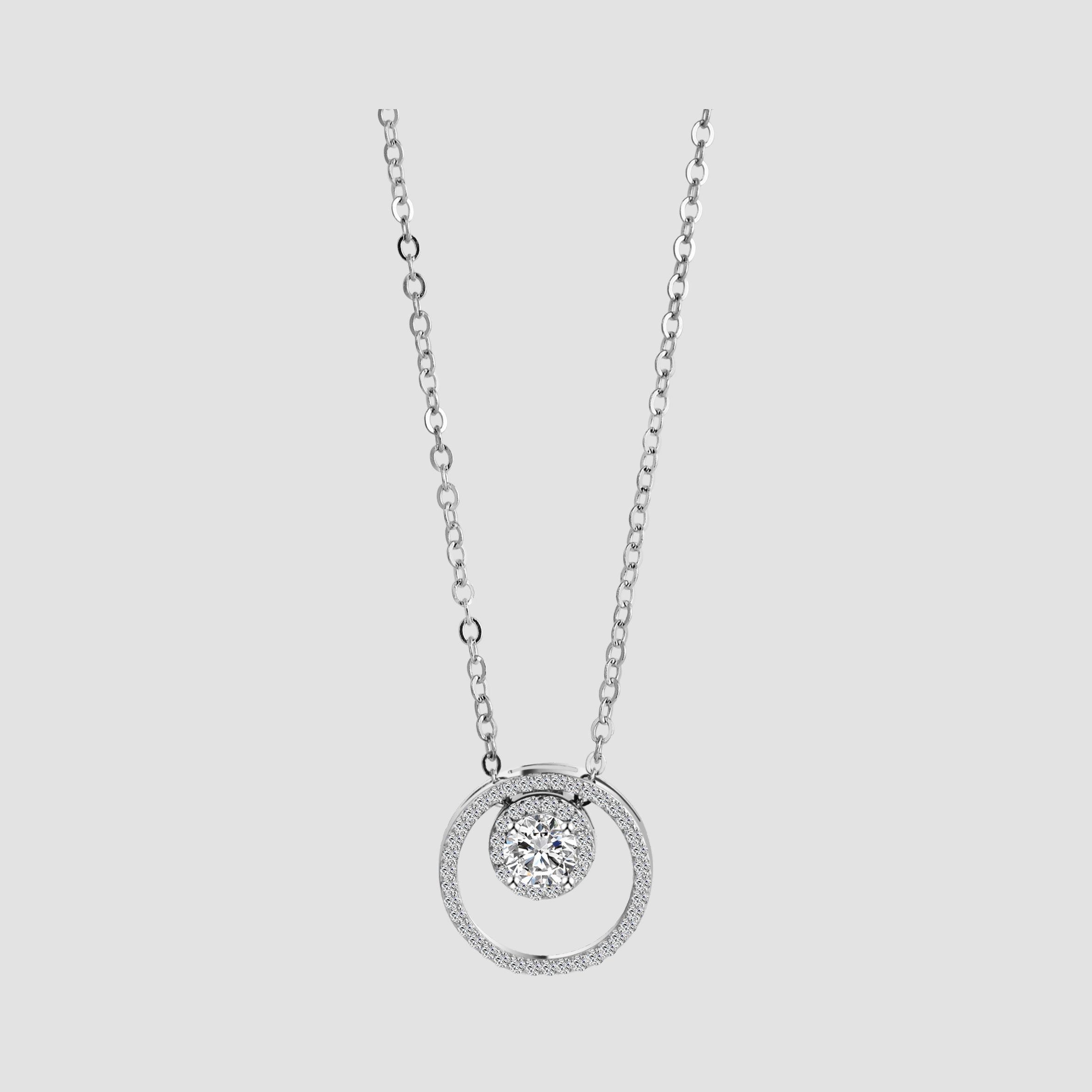 Die Halskette aus 925/- Sterling Silber ist im Ankermuster gefertigt und hat eine Gesamtlänge von 45 cm inklusive einer 3 cm langen Verlägerungskette. Verschlossen wird sie mit einem klassischen Karabinerhaken. An der Kette ist ein runder Ringanhänger angebracht, der mittig einen funkelnden Zirkoniastein umfasst. Auch der Ringanhänger ist rundherum mit zahlreichen Steinchen verziert. Sowohl die Kette als auch der Anhänger sind zusätzlich mit einer Rhodiumschicht versehen. Diese schützt das Schmuckstück vor dem Anlaufen und verleiht ihm einen besonders hohen Glanz. Ein schönes Accessoire, welches sich auch ideal zum Verschenken eignet. Beispielsweise zu Weihnachten oder zum Geburtstag.