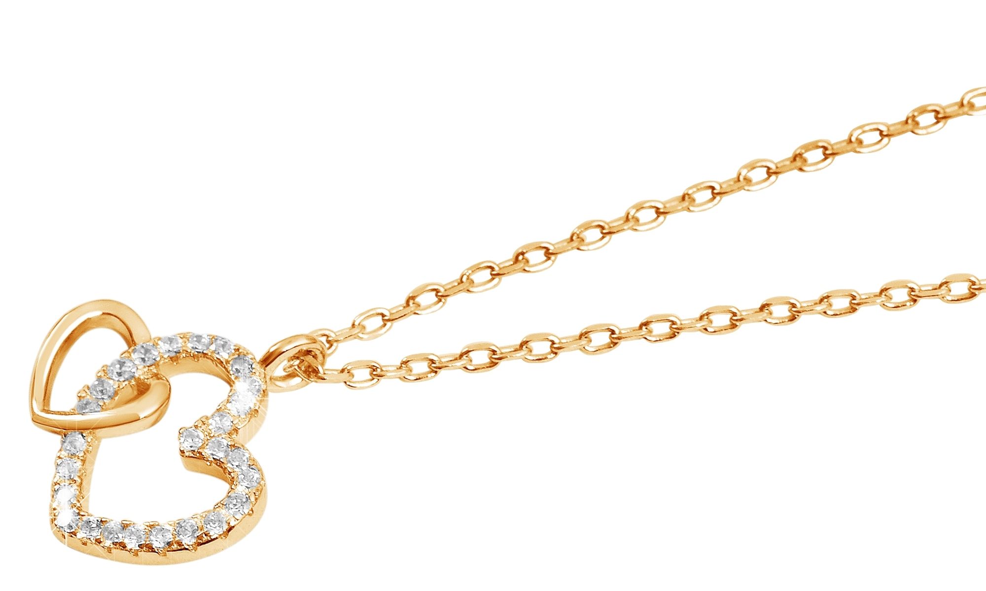 Produktinformationen "925/- Echt Silber Halskette mit Anhänger "Mona", Herz mit Zirkoniabesatz, 42+3cm, rosévergoldet"