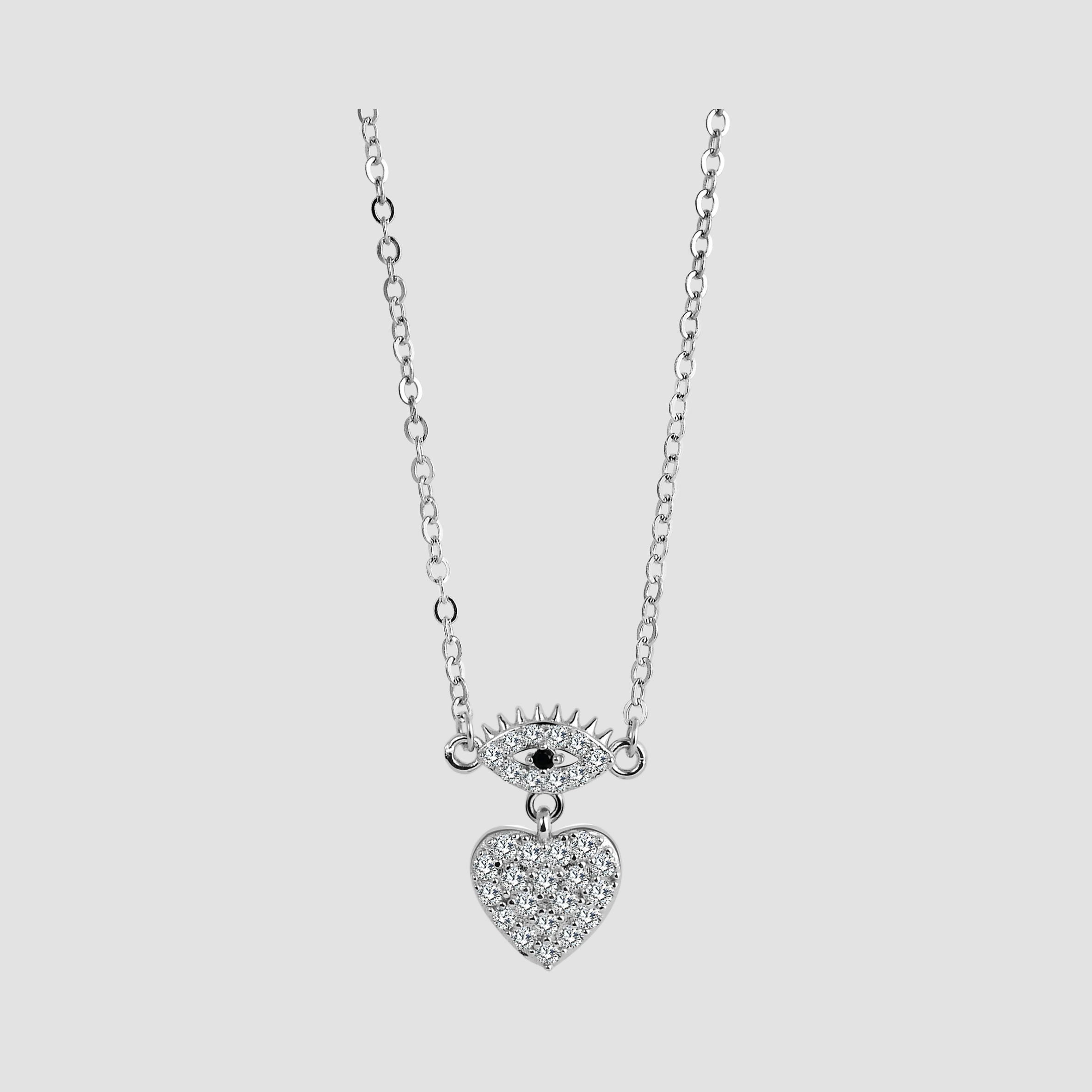 Die Halskette aus 925/- Sterling Silber ist im Ankermuster gefertigt und hat eine Gesamtlänge von 45 cm, inklusive einer 3 cm langen Verlängerungskette. An der Kette sind zwei Anhänger in Form eines Herzens und des Nazar Auges mit blauem Zirkonastein angebracht. Desweiteren sind die Silberanhänger mit zahlreichen weißen Zirkoniasteinen verziert. Sowohl die Kette als auch die Anhänger sind zusätzlich rhodiniert. Dank der hochwertigen Beschichtung ist das Schmuckstück vor dem Anlaufen geschützt und mit strahlendem Glanz versehen. Die Halskette ist nicht nur optisch ein toller Hingucker. Er ist gleichzeitig ein Glücksbringer, der seiner Trägerin vor dem bösen Blick schützen soll.
