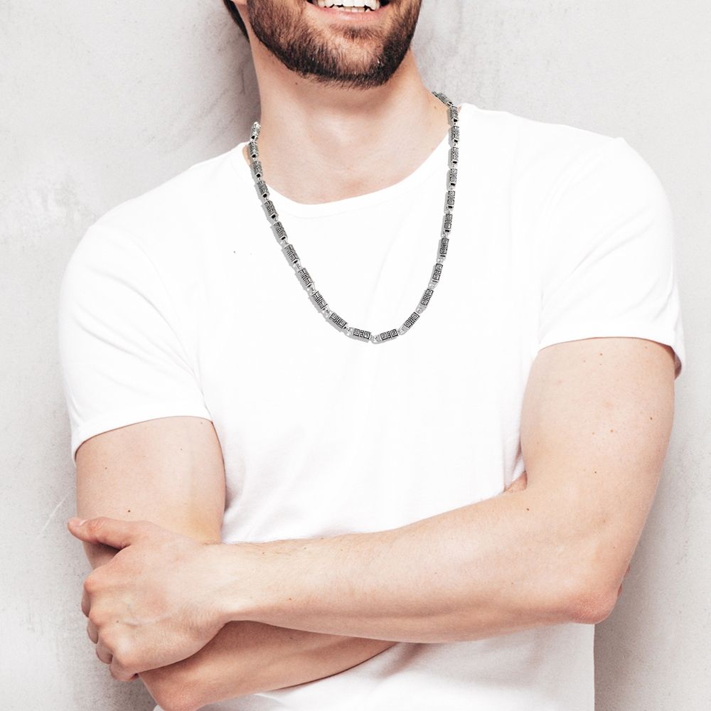 Diese 925er Echt Silber Kette im exklusiven Designer-Look vereint Luxus und Stil in einem markanten Schmuckstück. Gefertigt aus hochwertigem Sterlingsilber, besticht die Kette durch ihren raffinierten Glanz und eine zeitgemäße, urbane Ästhetik. Das moderne Design wird durch eine präzise Kettengliederung ergänzt, die der Kette eine elegante und zugleich kraftvolle Optik verleiht. Der edle Karabinerverschluss sorgt nicht nur für sicheren Halt, sondern unterstreicht auch den hochwertigen Charakter dieses Accessoires. Ob im Business-Outfit oder als stilvolles Highlight zu Casual-Looks – diese Designer-Kette ist das perfekte Statement für den modernen Mann, der Wert auf Qualität und anspruchsvolles Design legt.