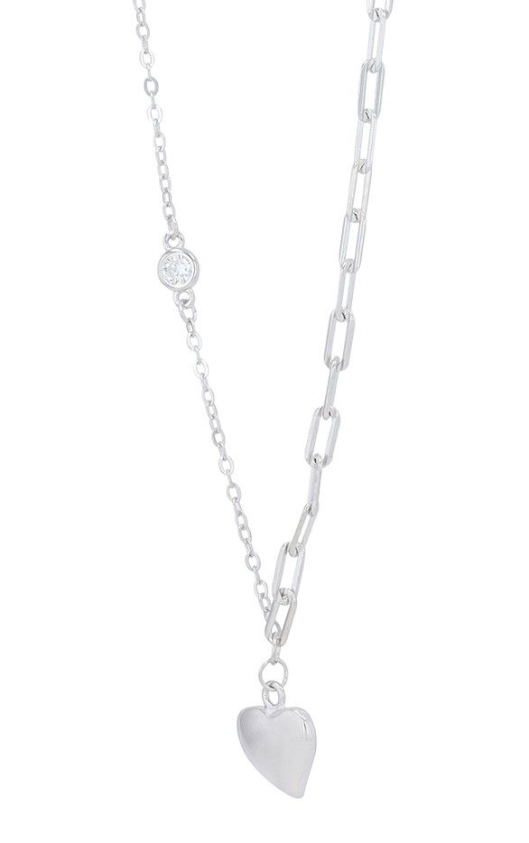 Die Kette kombiniert zwei unterschiedliche Kettenarten, die harmonisch in einen polierten Herzanhänger übergehen. Die Kette hat eine Länge von 43 cm plus einer zusätzlichen 3 cm langen Verlängerung, die eine flexible Anpassung an verschiedene Halsweiten ermöglicht. Der Anhänger misst 10 x 9 x 2 mm, eine perfekte Größe, die sowohl Eleganz als auch subtile Präsenz bietet.