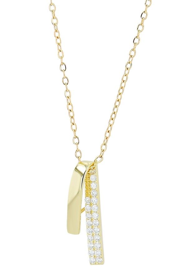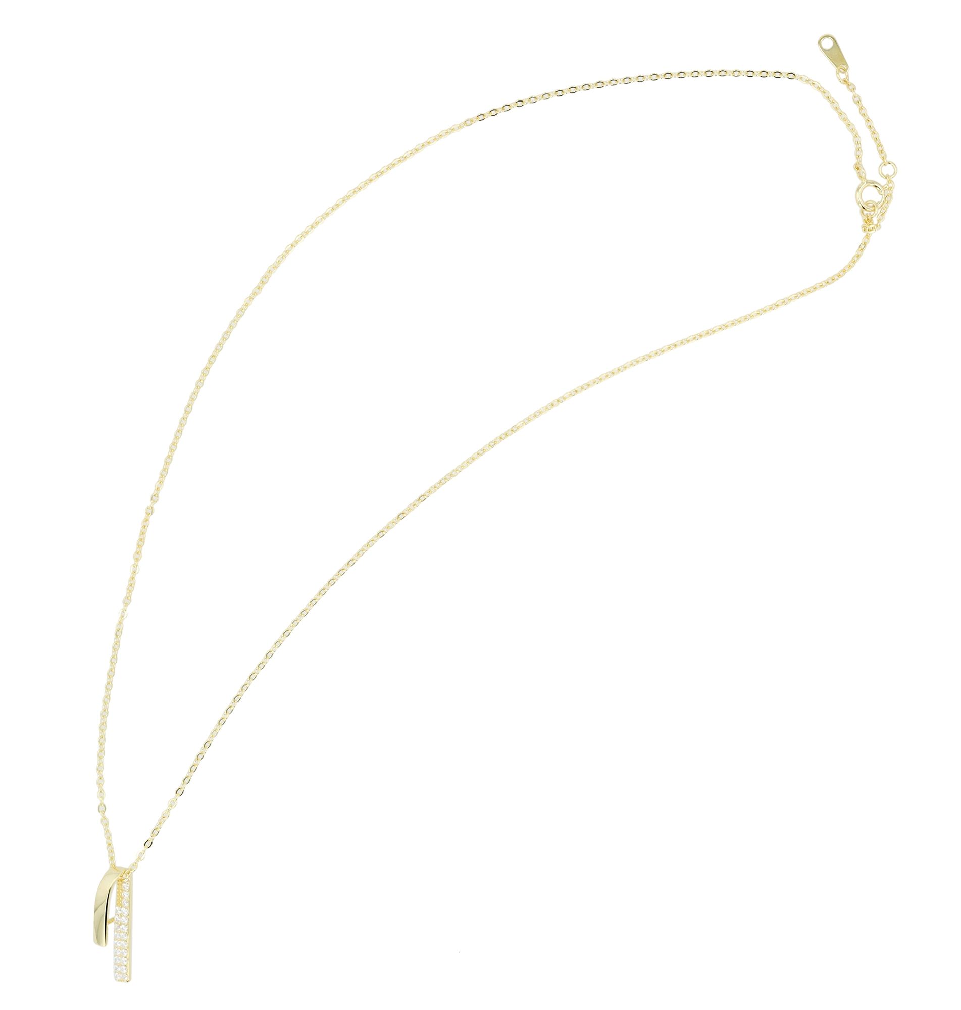 In einer Kombination aus zeitloser Schönheit und strahlendem Glanz präsentiert sich diese edle Kette mit Anhänger, gefertigt aus vergoldetem 925er Sterling Silber. Der Anhänger verführt mit seinem eleganten Charme und der raffinierten Ausführung. Mit den Maßen von 18,5 x 6 x 4,5 mm ist dieser Anhänger ein toller Blickfang. Besetzt mit 21 funkelnden Zirkonia, zieht dieser jeden Betrachter in seinen Bann. Die strahlenden Zirkonia bieten einen tollen Kontrast zum warmen Goldton, welcher die Schönheit des Schmuckstücks noch weiter betont. Die Halskette hat eine Länge von 39 cm mit einer zusätzlichen Verlängerung von 4 cm, die für eine individuelle Anpassung und ein optimales Tragegefühl sorgt. Der Karabinerverschluss sorgt für einen sicheren Halt. Dieser Halsschmuck ist nicht nur ein schönes Accessoire, sondern auch ein Statement von zeitloser Eleganz und raffinierter Schönheit.