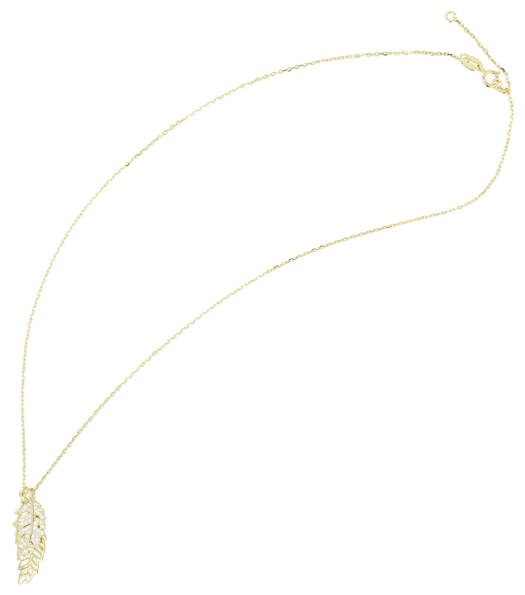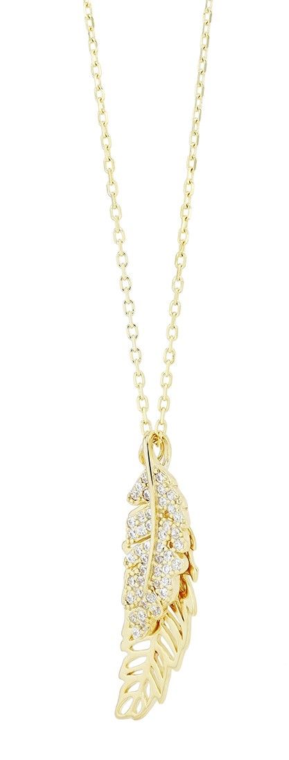 Diese bezaubernde Halskette mit zwei Kettenanhängern in Blattform ist aus vergoldetem 925er Sterling Silber gefertigt. Jeder Anhänger ist ein kunstvolles Meisterwerk und verleiht dem Schmuckstück eine unvergleichliche Eleganz. Das große Blatt, mit schlichter Schönheit und den Maßen von 25 x 8,5 x mm fasziniert durch seine detaillierte Darstellung. Jede feine Linie ist sorgfältig ausgearbeitet um die natürliche Schönheit des Blattes einzufangen. Das kleinere Blatt, mit den Maßen 19,5 x 7 x2 mm, erstrahlt mit einem Besatz aus 45 glitzernden Zirkonia. Diese Steine funkeln und reflektieren das Licht in einem atemberaubenden Glanz. Die zarte Kette hat eine Gesamtlänge von 40 cm plus 3,5 cm Verlängerung und eine Stärke von 1 mm. Die Verlängerung bietet eine individuelle Anpassung und einen angenehmen Tragekomfort. Verschlossen wird der Halsschmuck leichthändig mit einem Karabinerverschluss. Diese zeitlose Kette verleiht jedem Outfit eine individuelle Ausstrahlung und einen unwiderstehlichen Charme. Somit ist diese ein stilsicheres Accessoire zu jedem Anlass.