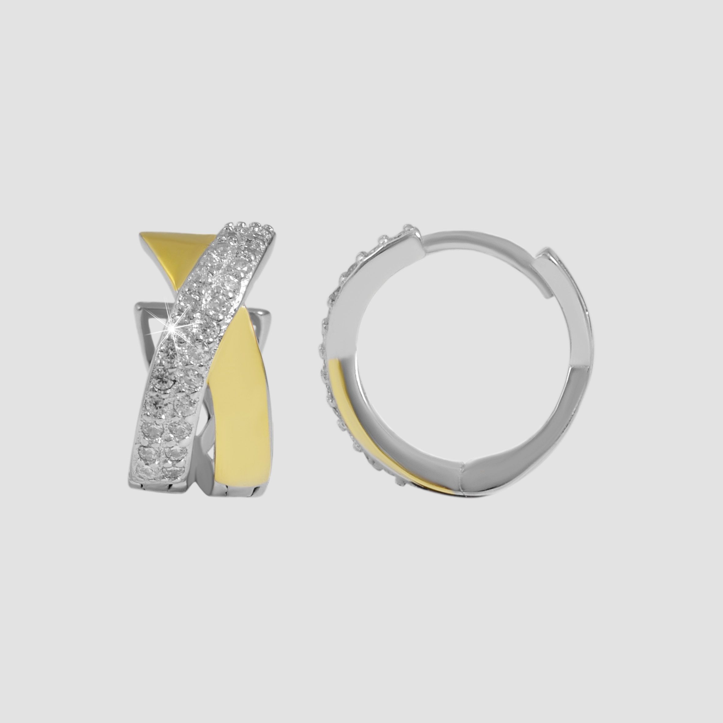 Produktinformationen "925/- Echt Silber Klapp-Creolen "Suna" mit Zirkoniabesatz, bicolor, 925/rhodiniert"