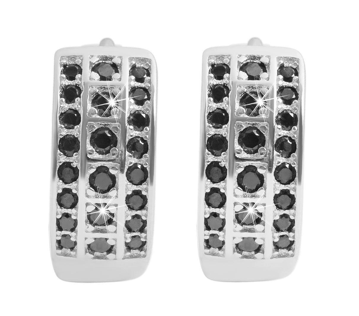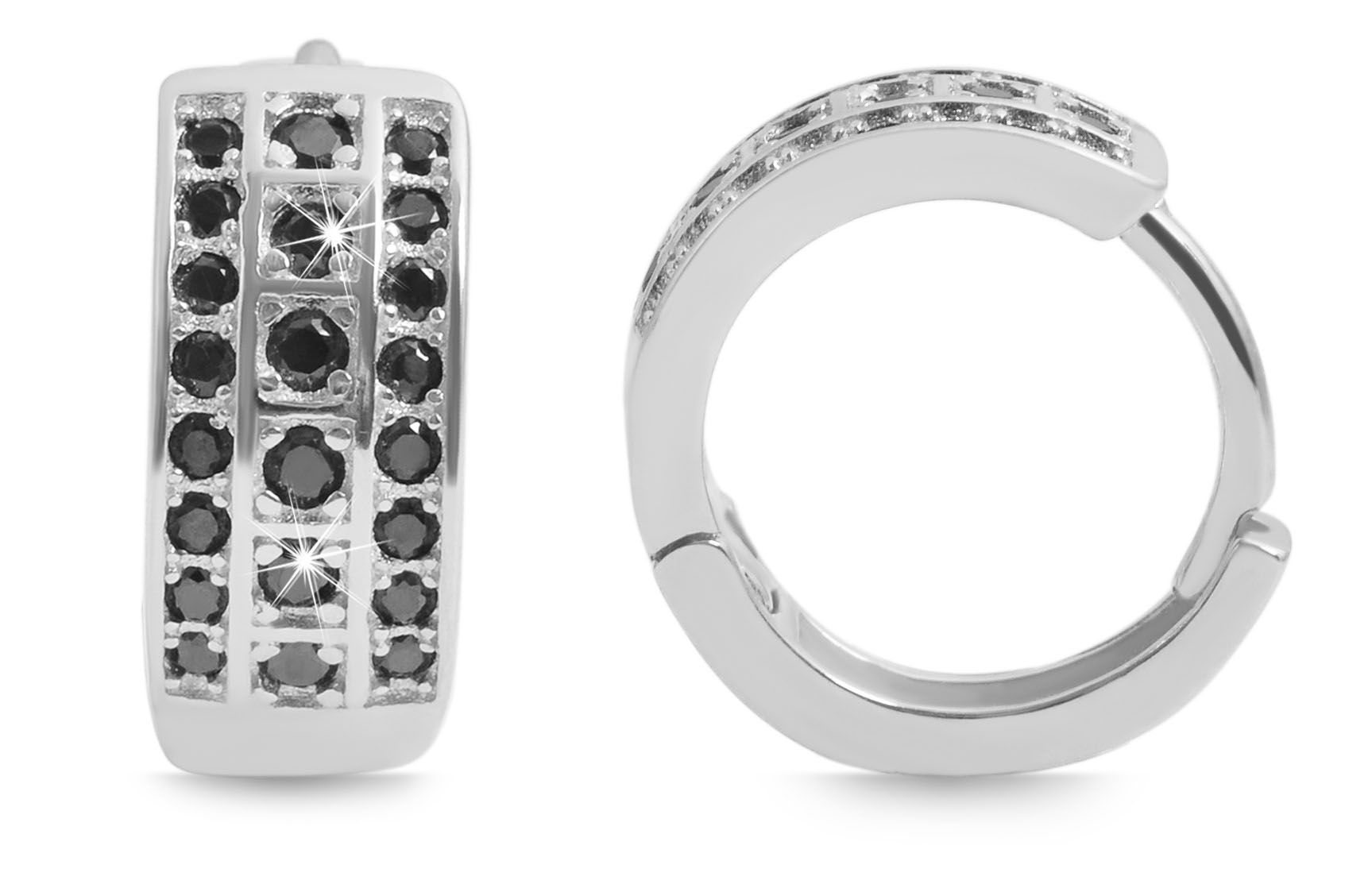 Produktinformationen "925/- Echt Silber Klappcreolen "Fenja" mit schwarzem Zirkoniabesatz, rhodiniert"
