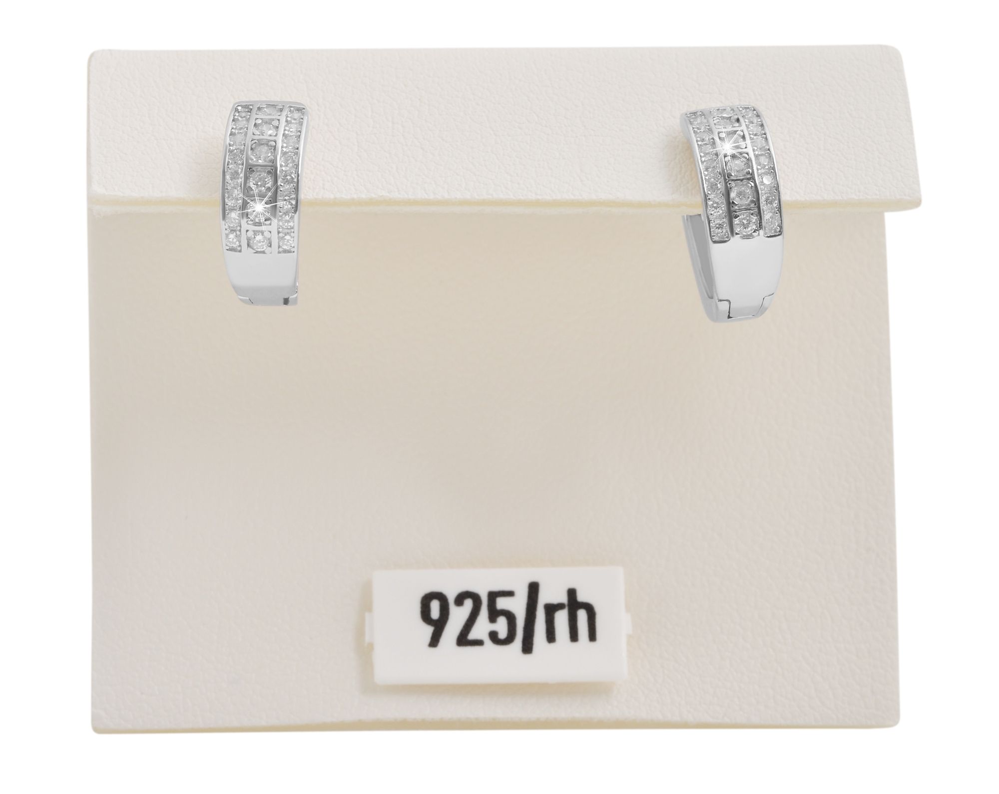 Produktinformationen "925/- Echt Silber Klappcreolen "Fenja" mit weißem Zirkoniabesatz, rhodiniert"