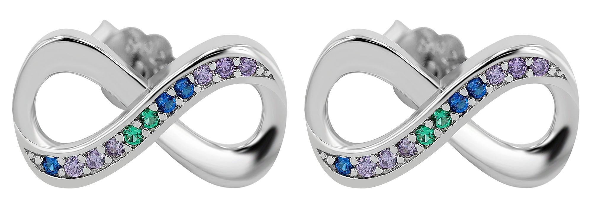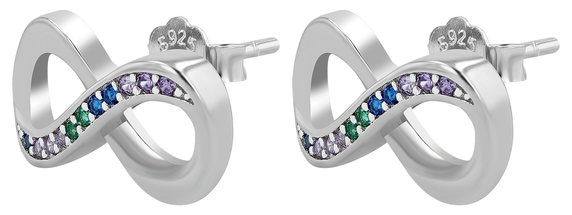 Produktinformationen "925/- Echt Silber Ohrstecker, Infinity, mehrfarbiger Zirkoniabesatz, rhodiniert"