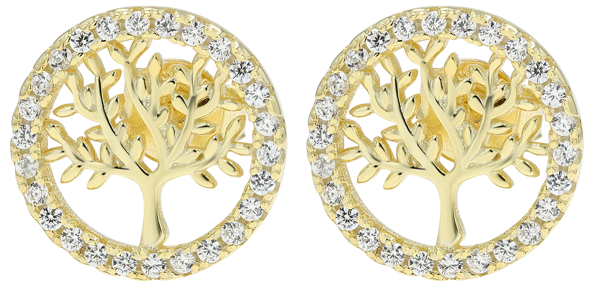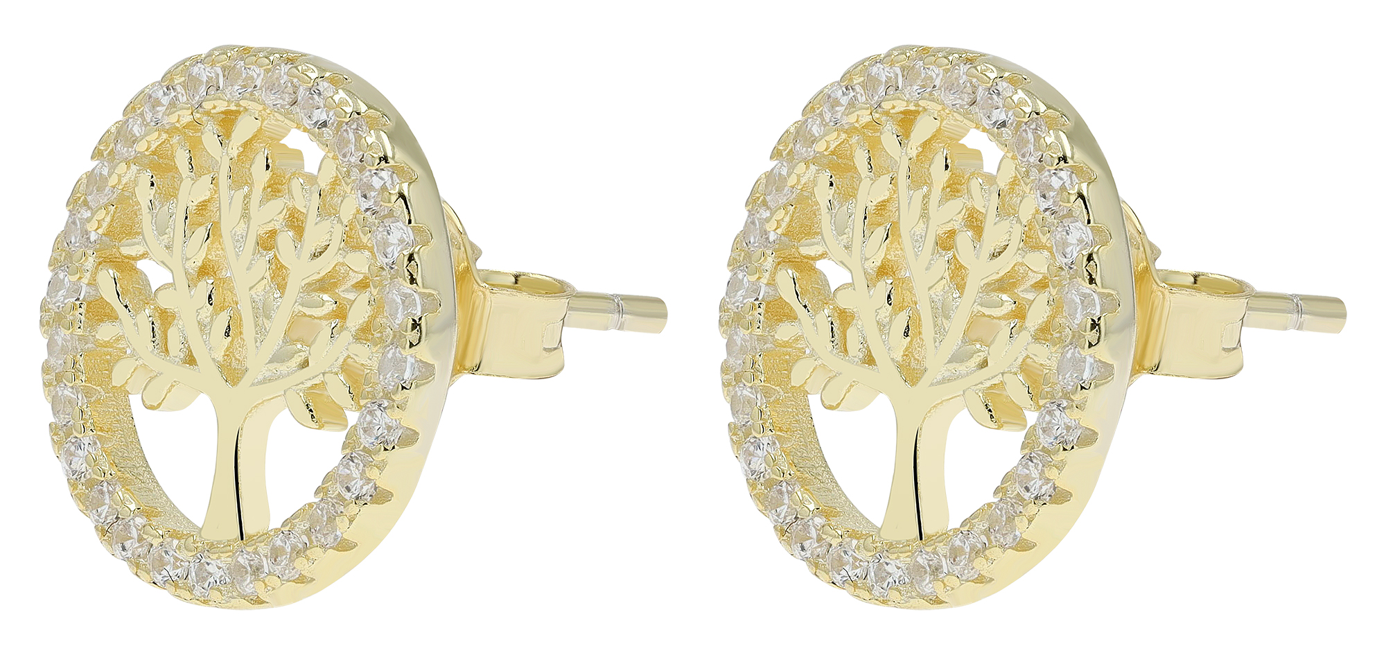 Produktinformationen "925/- Echt Silber Ohrstecker "Minel" Lebensbaum mit Zirkoniabesatz, vergoldet"