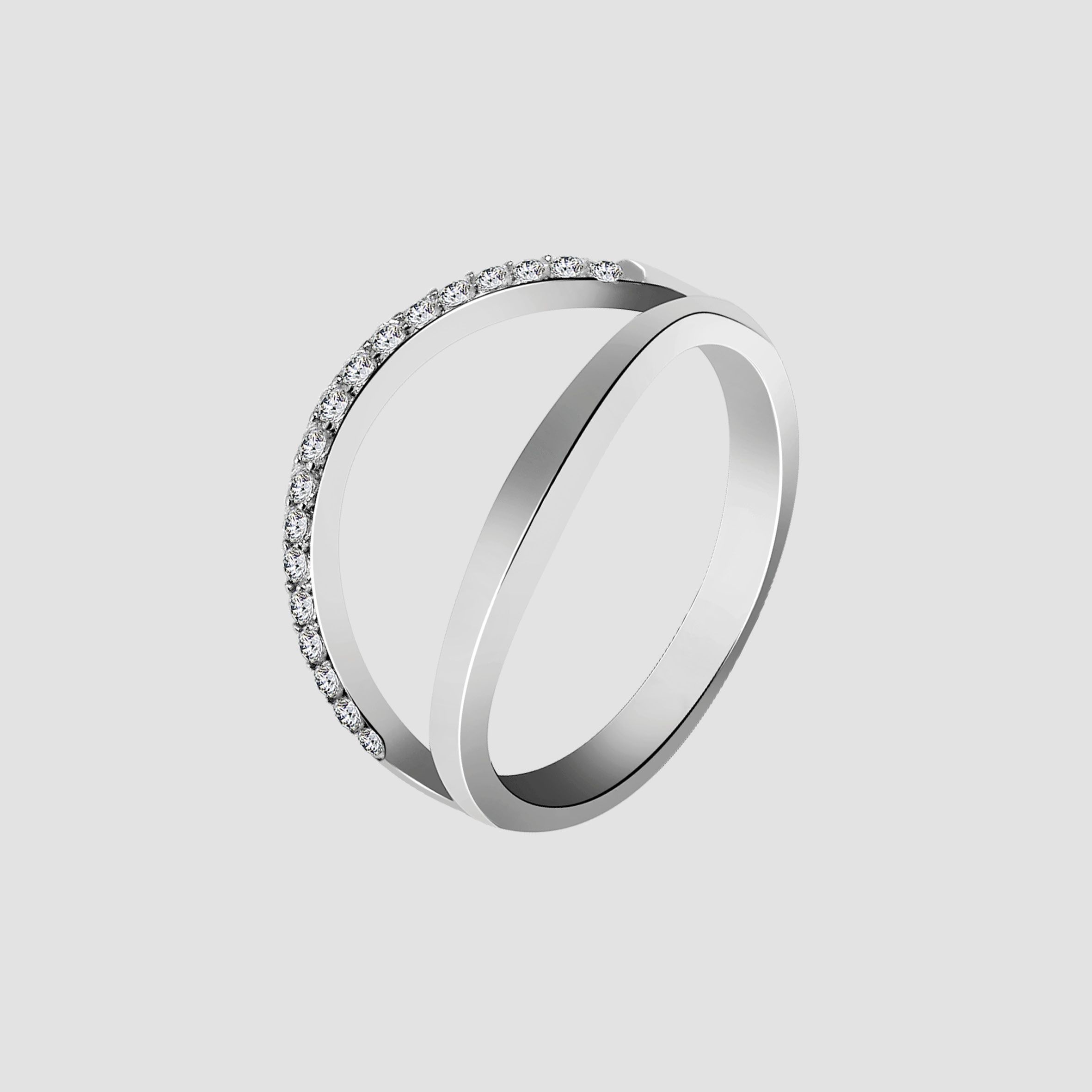 Der elegante Damenring im wurde aus 925/- Sterlingsilber hergestellt und zusätzlich rhodiniert. Die hochwertige Beschichtung aus Rhodium schützt das Schmuckstück vor dem Anlaufen. Zudem ist die Oberflächenbeschaffenheit hochglanzpoliert, sodass der Fingerring dadurch im Glanz erstrahlt. Dazu tragen auch die 18 funkelnden Zirkoniasteine bei, die eine der Ringschienen verziert. Die Besonderheit bei diesem Ring ist das zweiteilige Design. Dieses wurde aus zwei Ringschienen hergestellt, sodass beide Ringe zu einem V zulaufen und dort miteinander verbunden sind. Der Silberring hat die Ringgröße 50, eine Breite von 13 mm und eine Materialstärke von 3 mm. Beliebig kann der er sowohl von innen, als auch von außen mit einer filigranen Gravur gestaltet werden und wird somit zu einem ganz persönlichen Accessoire, das sich ideal zum Verschenken eignet - beispielsweise zur Verlobung, zum Geburtstag oder zum Valentinstag.