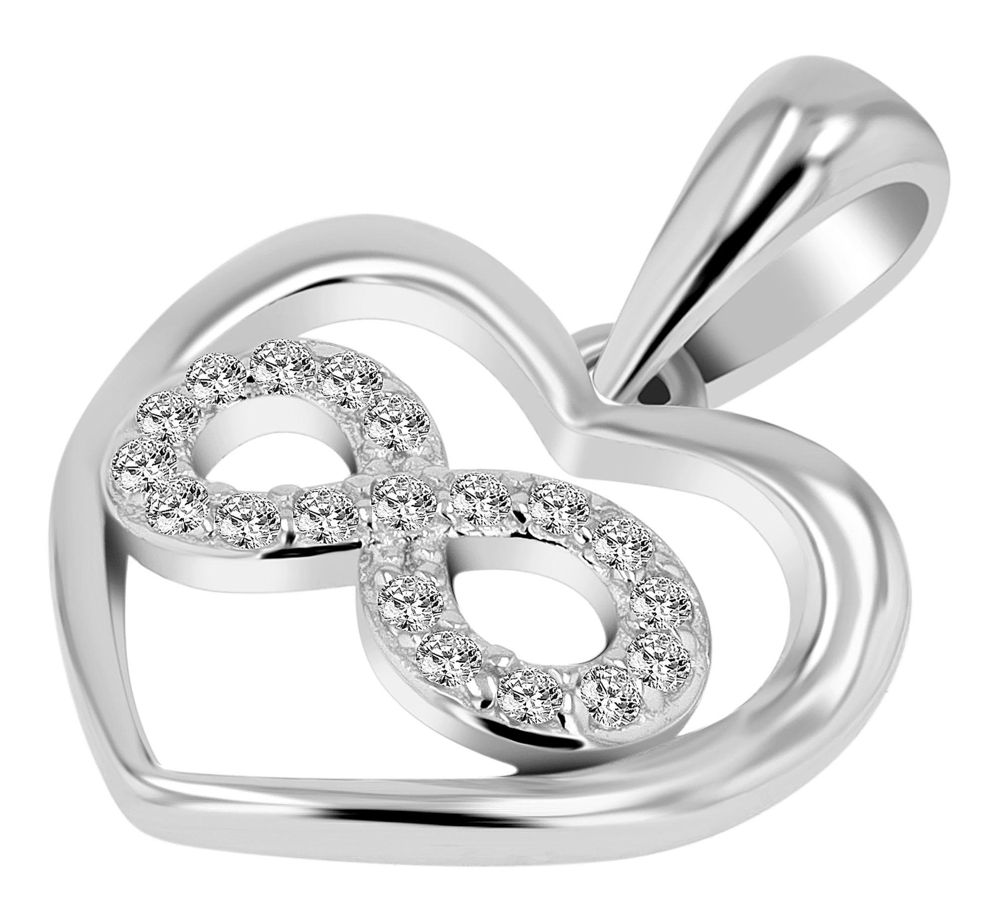 Jedes Schmuckstück dieser Kollektion ist aus hochwertigem 925er Sterlingsilber gefertigt und durch eine zusätzliche Rhodinierung veredelt, was nicht nur für unwiderstehlichen Glanz, sondern auch für außergewöhnliche Langlebigkeit steht. Sowohl die Ohrstecker, als auch der Anhänger, präsentieren dasselbe Design in Form von Herzen Infinity-Symbol,, was die Freiheit gibt, sie harmonisch miteinander zu kombinieren.