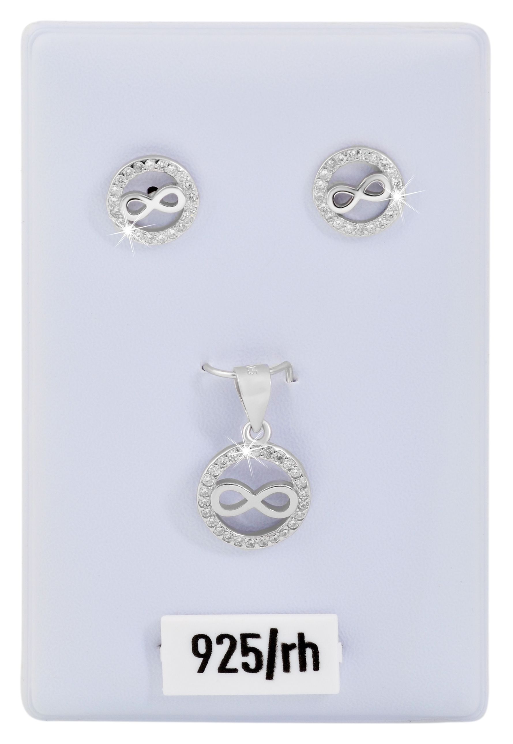 Produktinformationen "925/- Echt Silber Schmuckset "Irina", Anhänger und Ohrstecker mit Infinity-Symbol, 925/rhodiniert"