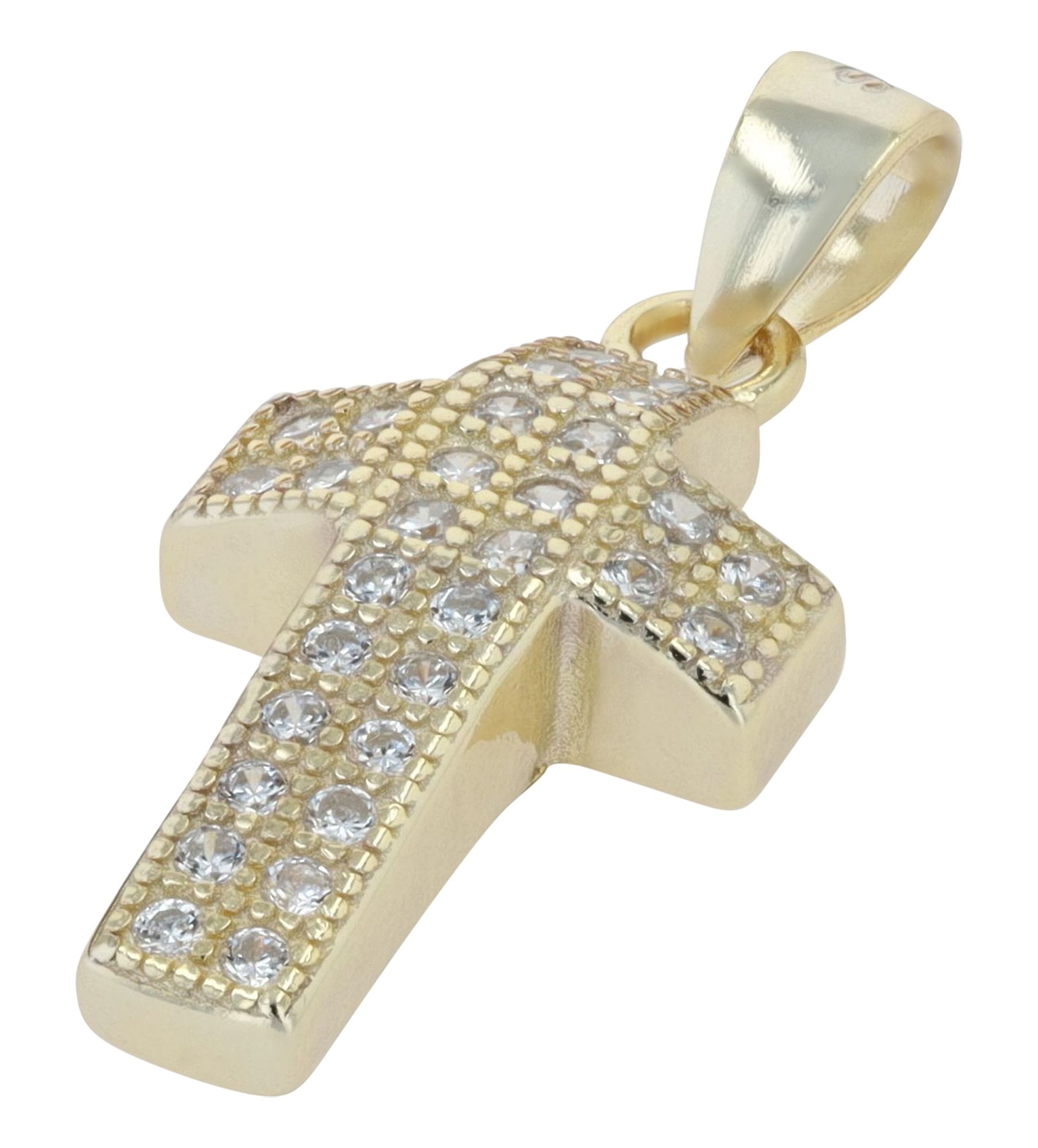 Produktinformationen "925er Sterlingsilber Kreuzanhänger "Finley", Zirkoniabesatz, vergoldet"