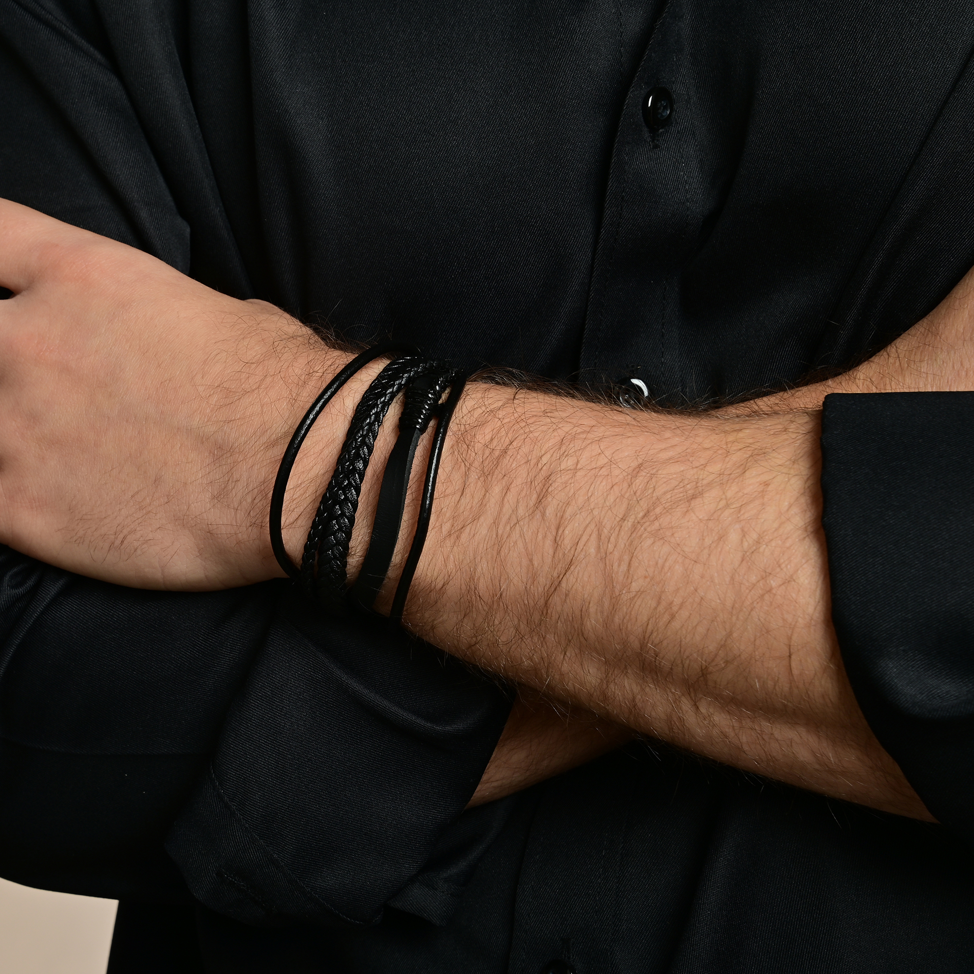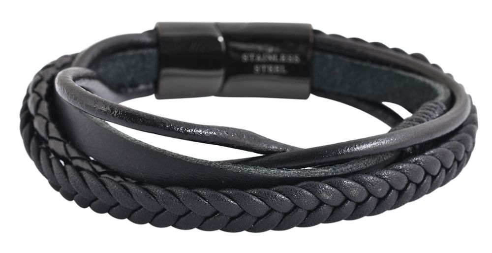 Das fünfreihige, schwarze Schmuckarmband der Marke Akzent wurde aus echtem Leder gefertigt und ist toller Blickfang für jedes Handgelenk. Eingearbeitet sind fünf Riemen, in drei verschiedenen Formen. Drei runde Riemchen, ein flaches, 6 mm breit und ein 8 mm breiter geflochtener Riemen. Öffnen und schließen lässt sich dieses moderne Armband mit einem schwarzen magnetischen Edelstahl-Steckverschluss. Das Echtlederarmband hat eine Länge von 22 cm. Das Schmuckarmband ist vielseitig kombinierbar und passt sich jedem Anlass an. Ob zur Hochzeit oder im Park mit Freunden, das Lederarmband komplettiert jedes Outfit. Auch als Geschenk eignet es sich hervorragend. Zum Beispiel zum Geburtstag, zum Valentinstag oder zu Weihnachten.
