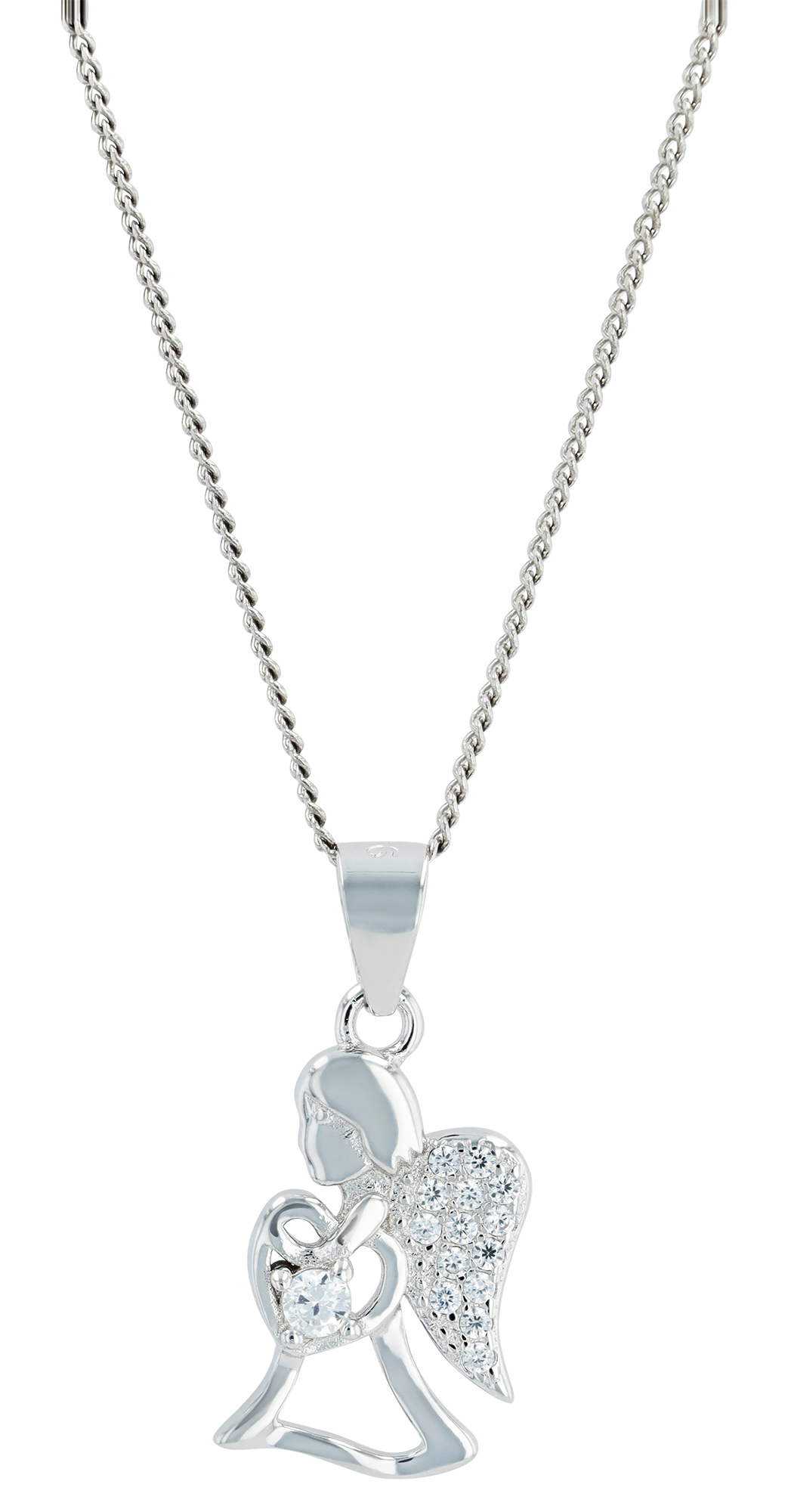 Produktinformationen ""Adriel" 925/- Echt Silber Anhänger - Engel/ Herz (o. Kette), Zirkonia, rhodiniert - Kinder"