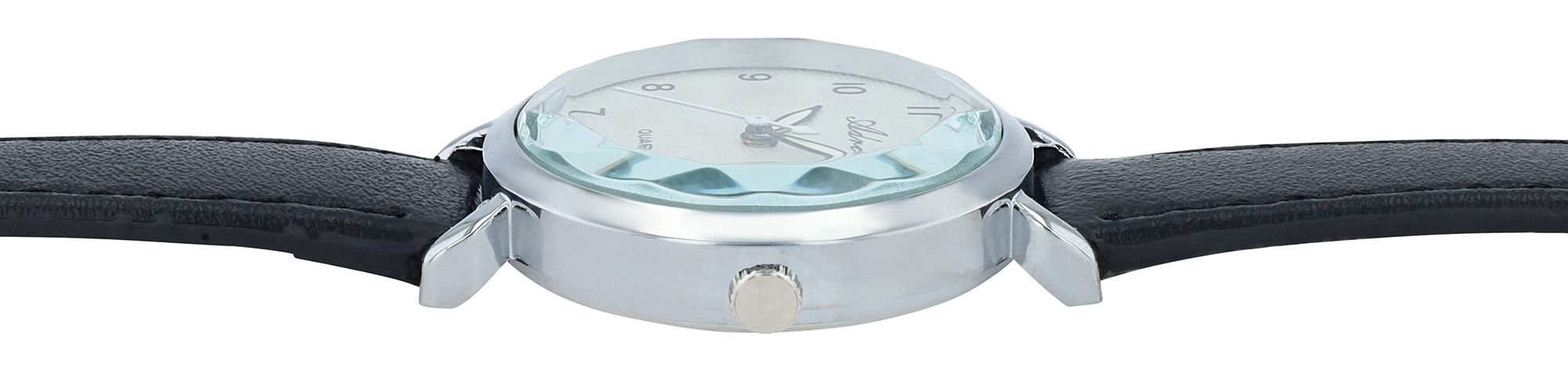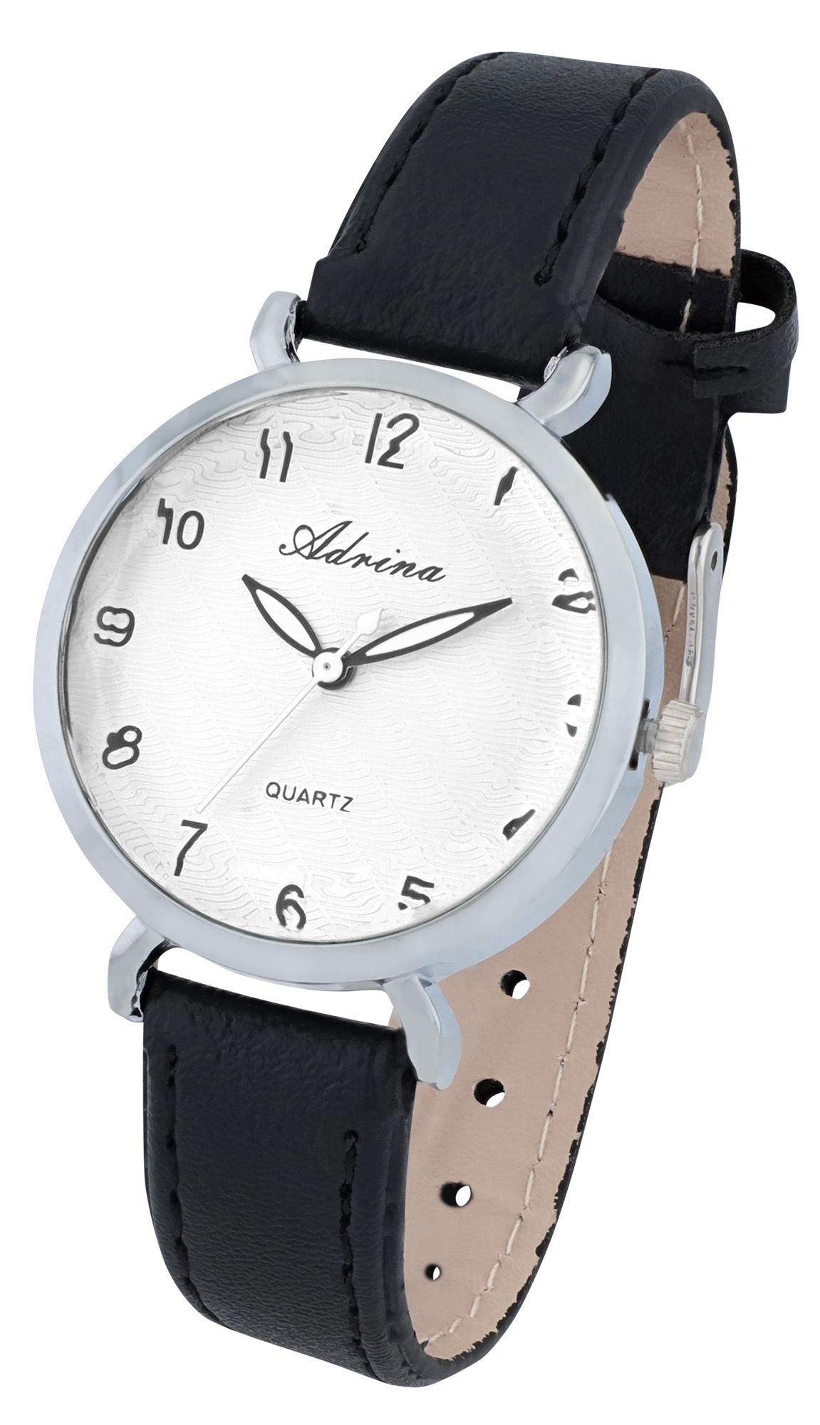 Adrina Damenuhr, Lederimitationsband, Ø 32,5 mm, schwarz/silberfarben
