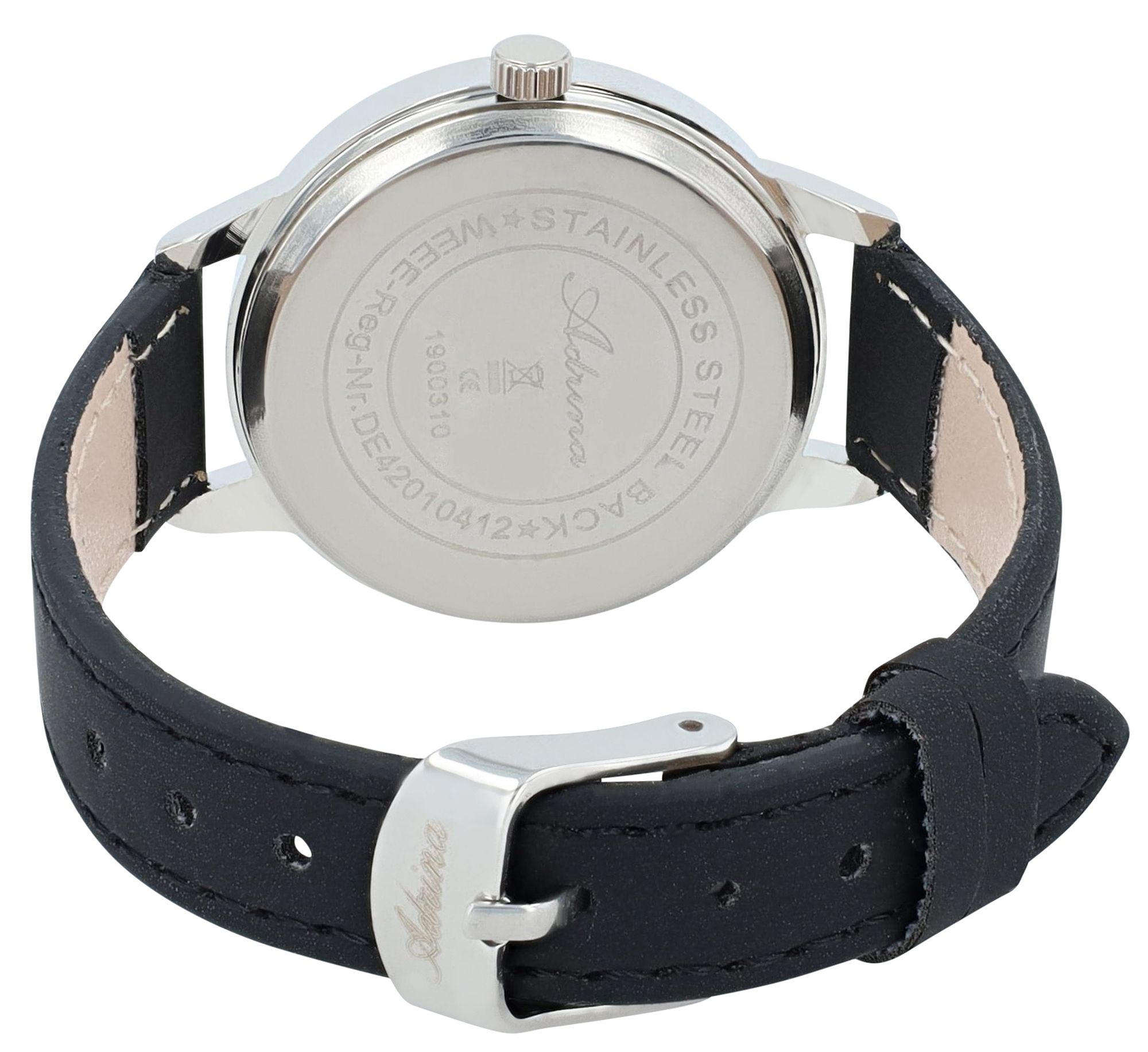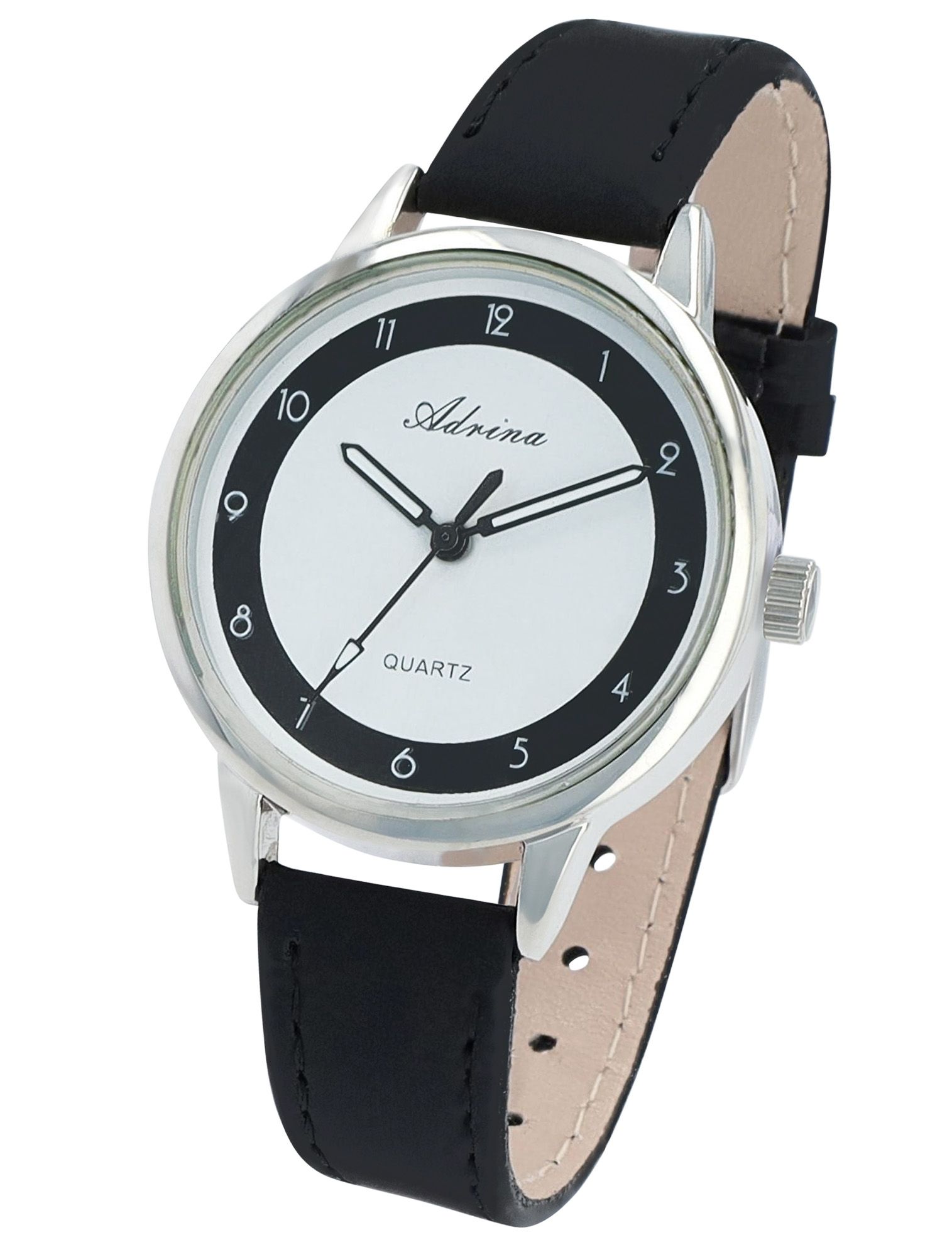 Produktinformationen "Adrina Damenuhr mit Lederimitationsband, Ø 34 mm, schwarz"