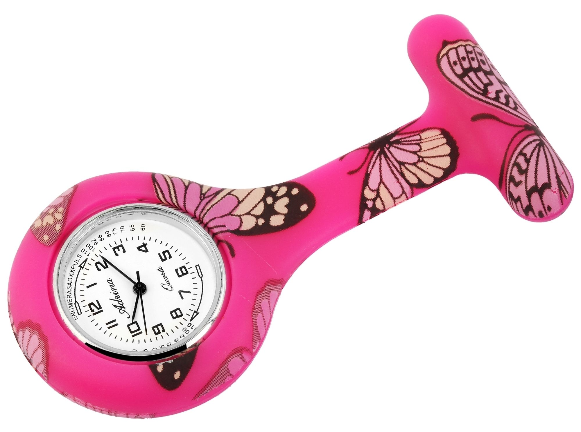 Adrina Krankenschwesteruhr aus Silikon, pink mit Schmetterlingen