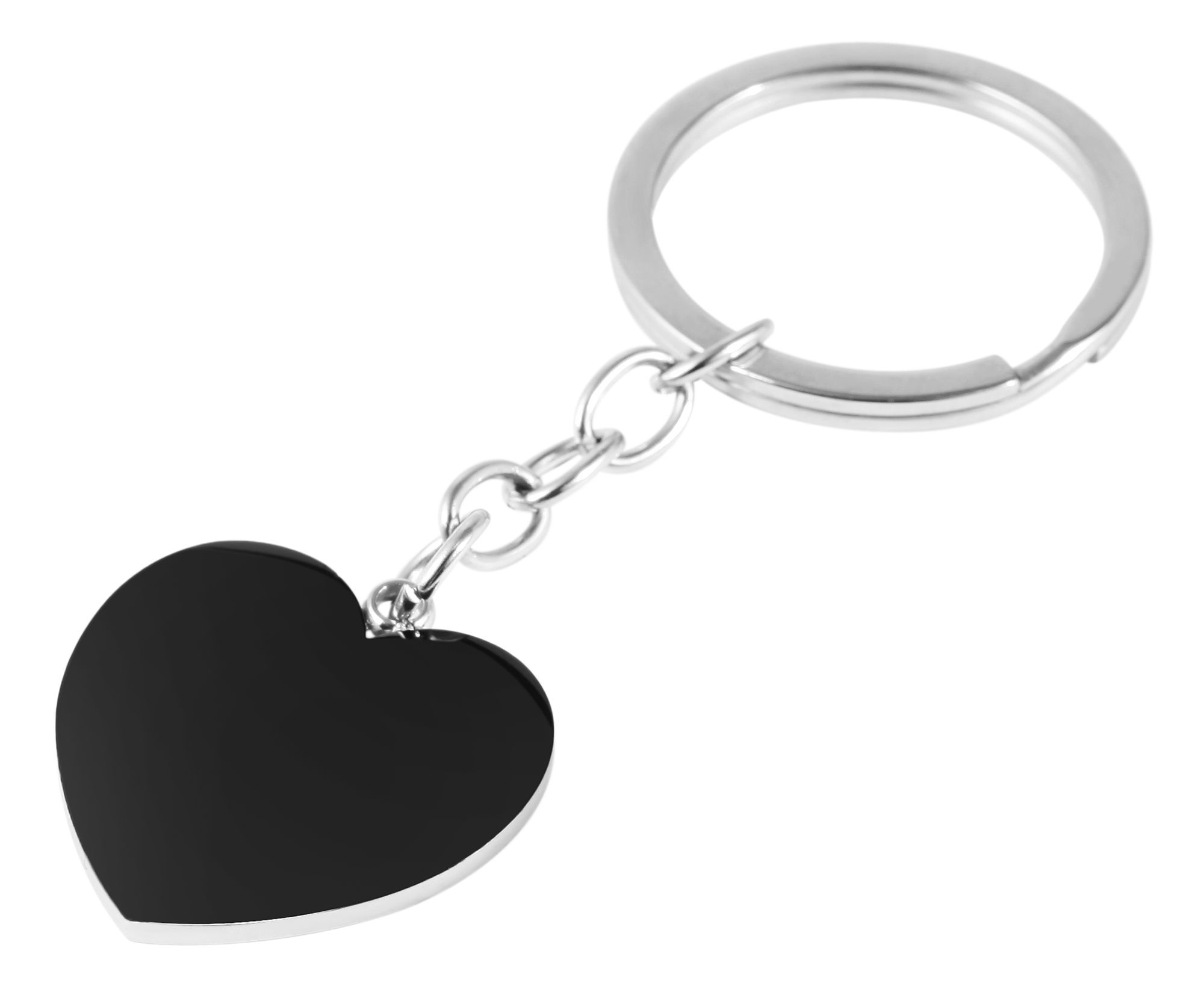 Produktinformationen ""Ahri" Schlüsselanhänger aus Edelstahl, Herz, Gravur, schwarz"