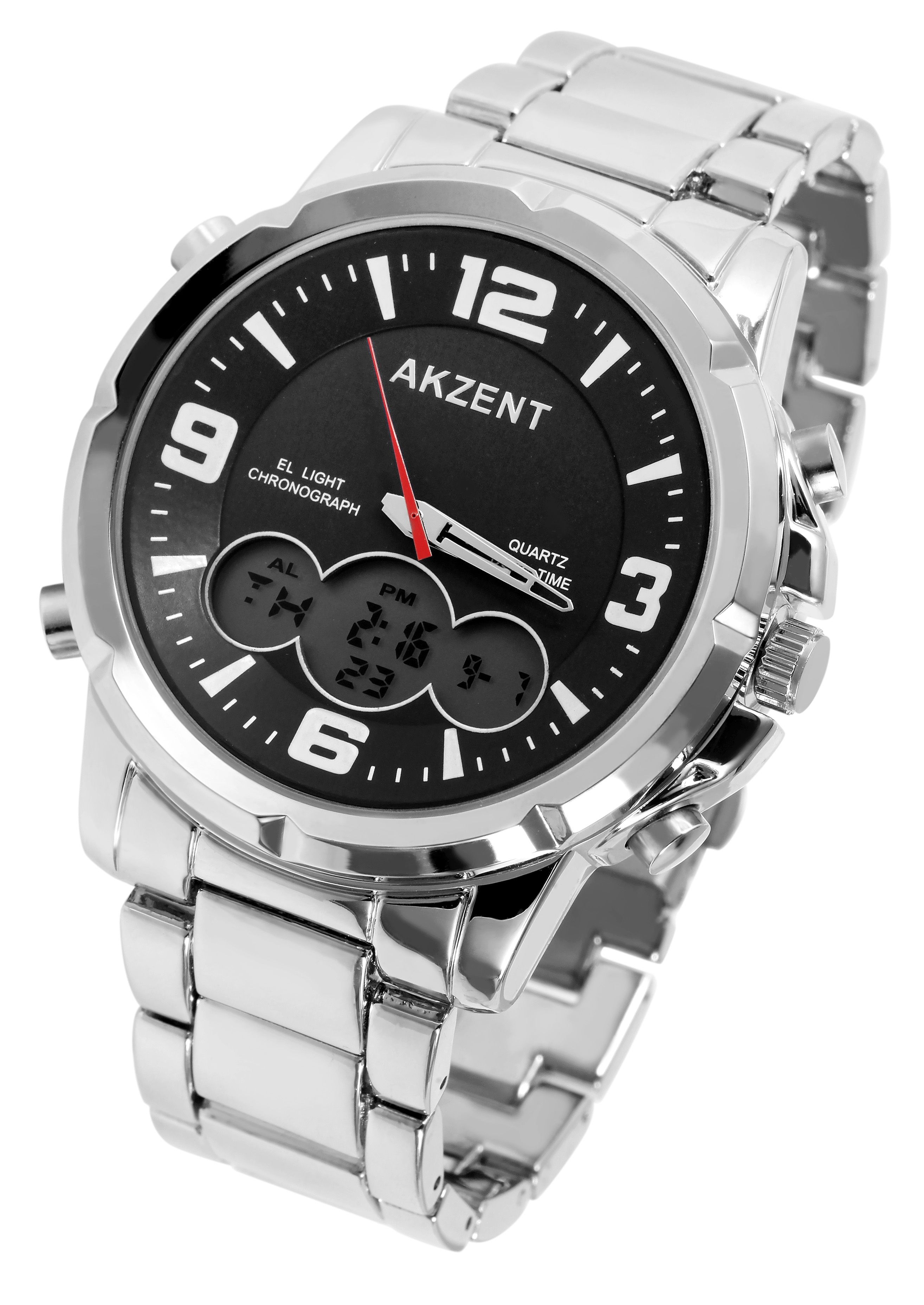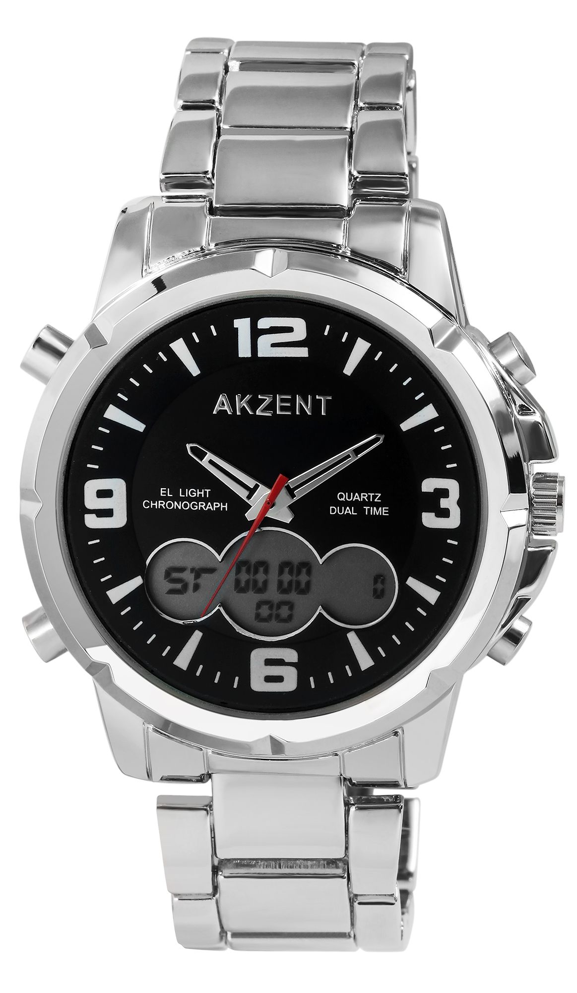 Produktinformationen "Akzent Analog/Digital Herrenuhr mit Edelstahlarmband, silberfarben/schwarz"