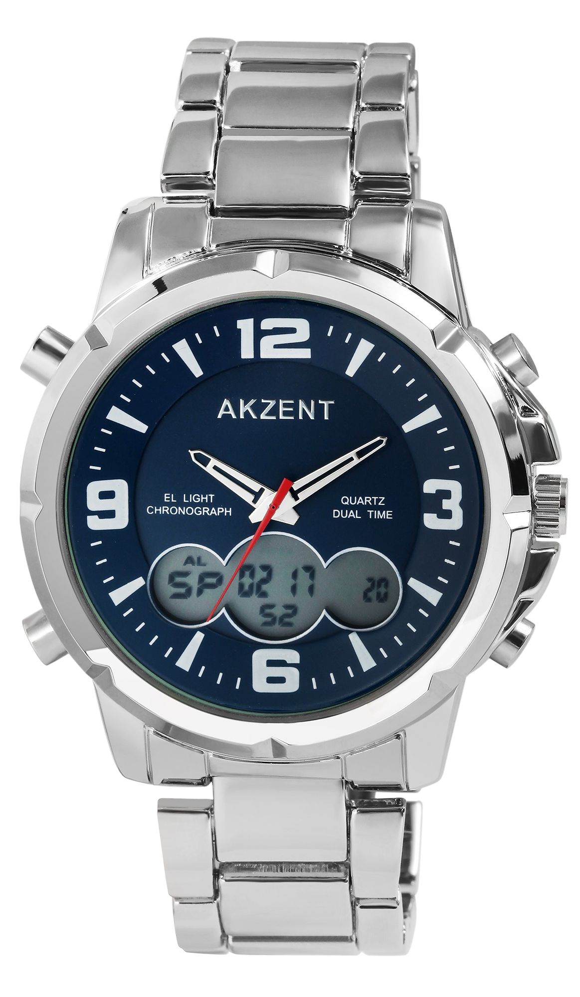 Produktinformationen "Akzent Analog/Digital Herrenuhr mit Edelstahlarmband, silberfarben/blau"