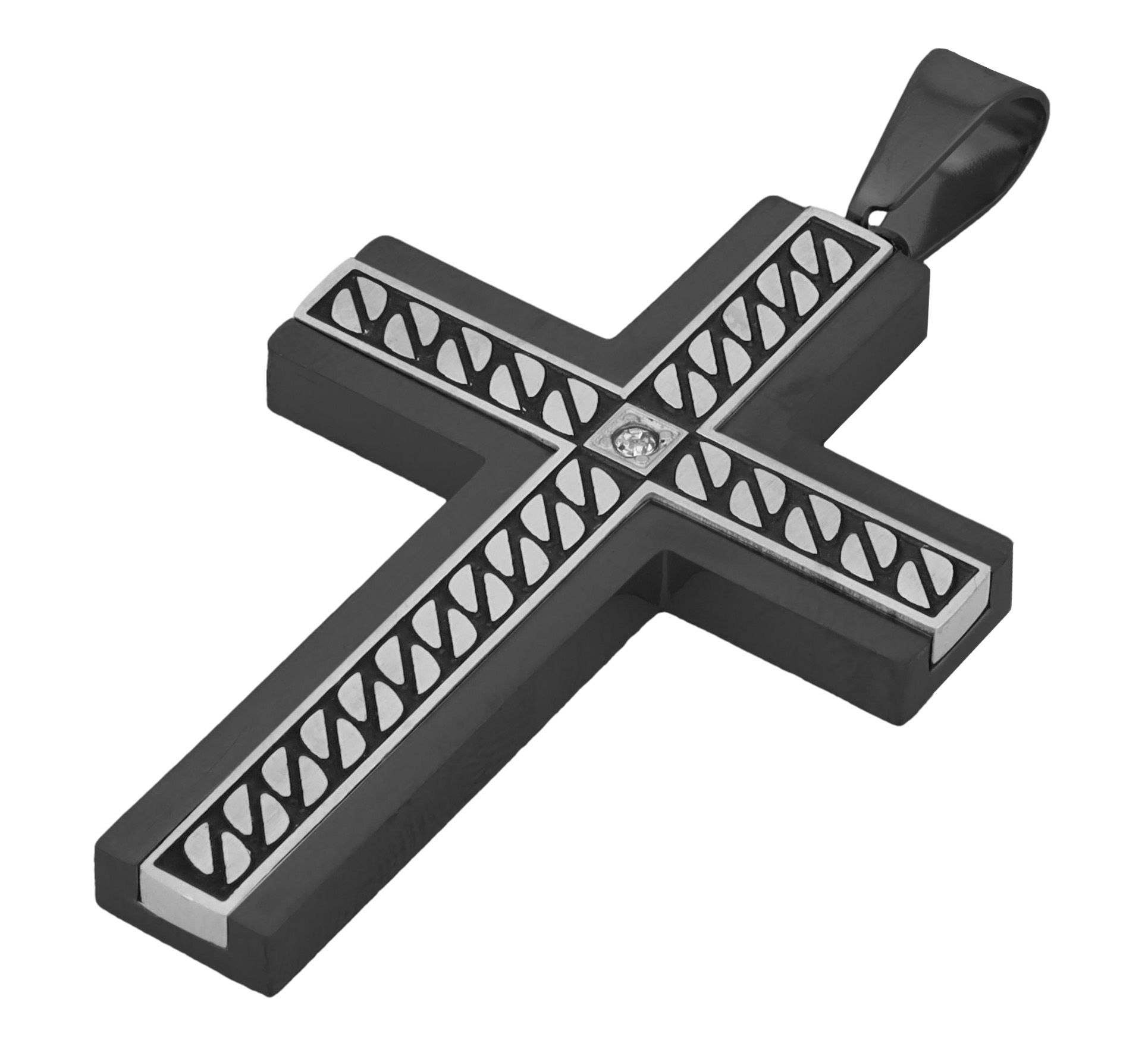 Produktinformationen "Akzent Anhänger "Greer", Kreuz mit Verzierungen & Simili, bicolor (silberfarben/schwarz)"