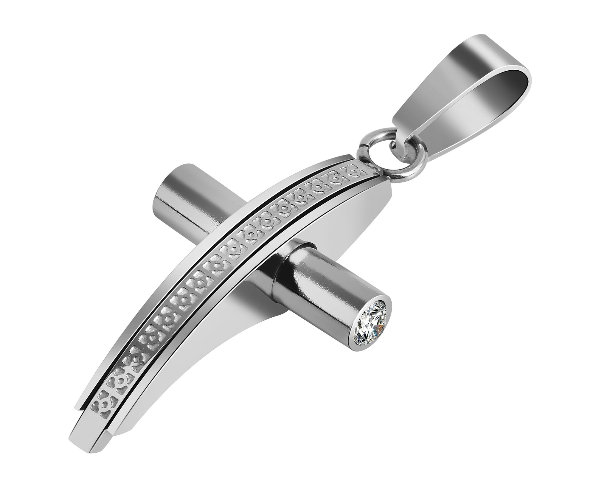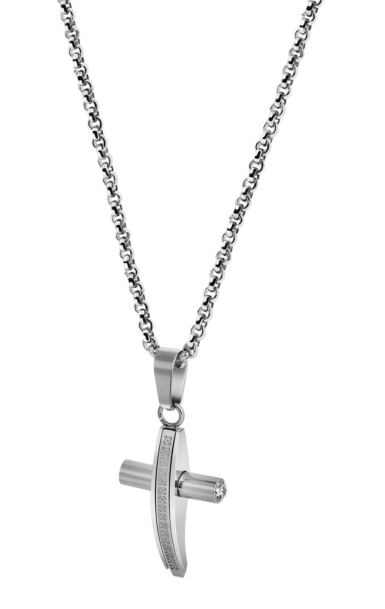 Der Anhänger der Marke Akzent in Form eines Kreuzes wurde aus Edelstahl gefertigt. Bei diesem Anhänger überzeugt das besondere Design. Dieses ist aus einem gewölbten Längsbalken mit Strukturmuster und einem rundlichen Querbalken gefertigt, der an den Enden mit zwei funkelnden Similisteinen verziert ist. Durch das polierte Oberflächenfinish strahlt dieser Kreuzanhänger einen besonderen Glanz aus. Aufgrund der ovalen Öse lässt sich der Schmuckanhänger mit jeder Art von Halsketten kombinieren. Er hat eine Länge von 30 mm, eine Breite von 19 mm und eine Stärke von 6 mm. Rundum ist der Kreuzanhänger ein schönes Accessoire, welches sich zu zahlreichen Gelegenheiten tragen und auch verschenken lässt. Beispielsweise zur Kommunion, zum Geburtstag oder zu Weihnachten.