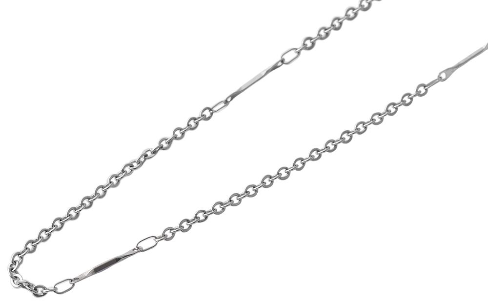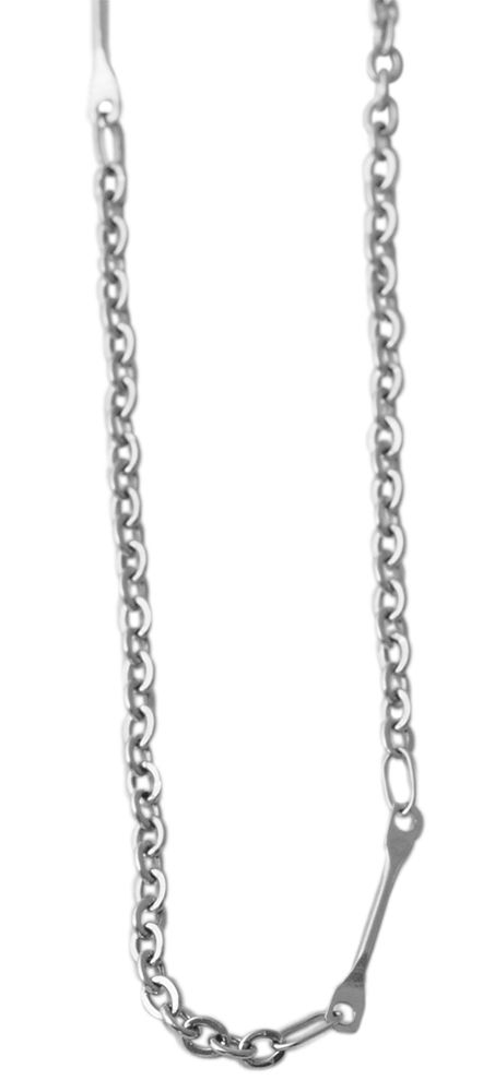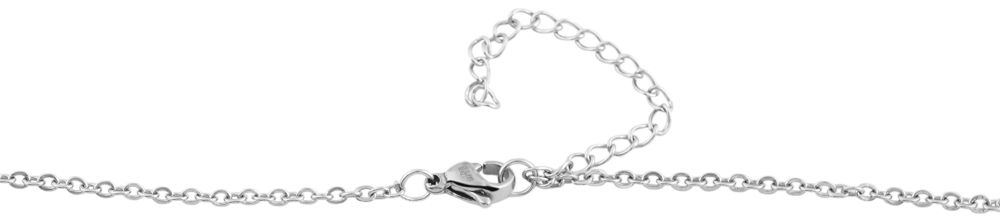 Die silberfarbene Halskette der Marke Akzent ist aus Edelstahl im Ankermuster gefertigt. Zusätzlich sind in gleichmäßigen Abständen längliche Edelstahlelemente in die Halskette eingearbeitet. Diese sind ebenfalls silberfarben und verleihen dem Schmuckstück einen besonderen Look. Öffnen und schließen lässt sie sich mit einem silberfarbenen Karabinerhaken, der ebenfalls aus Edelstahl gefertigt ist. An das Ende der Kette ist eine 5 cm lange Verlängerungskette angebracht, die es ermöglicht, die Länge der Halskette um bis zu 5 cm zu variieren und sie so an jedes Outfit anpassen zu können. Sie hat eine Länge von 55 cm und die Materialstärke beträgt 2 mm. Durch das robuste Material und die hochwertige Verarbeitung verspricht die schlichte Halskette eine lange Lebensdauer.