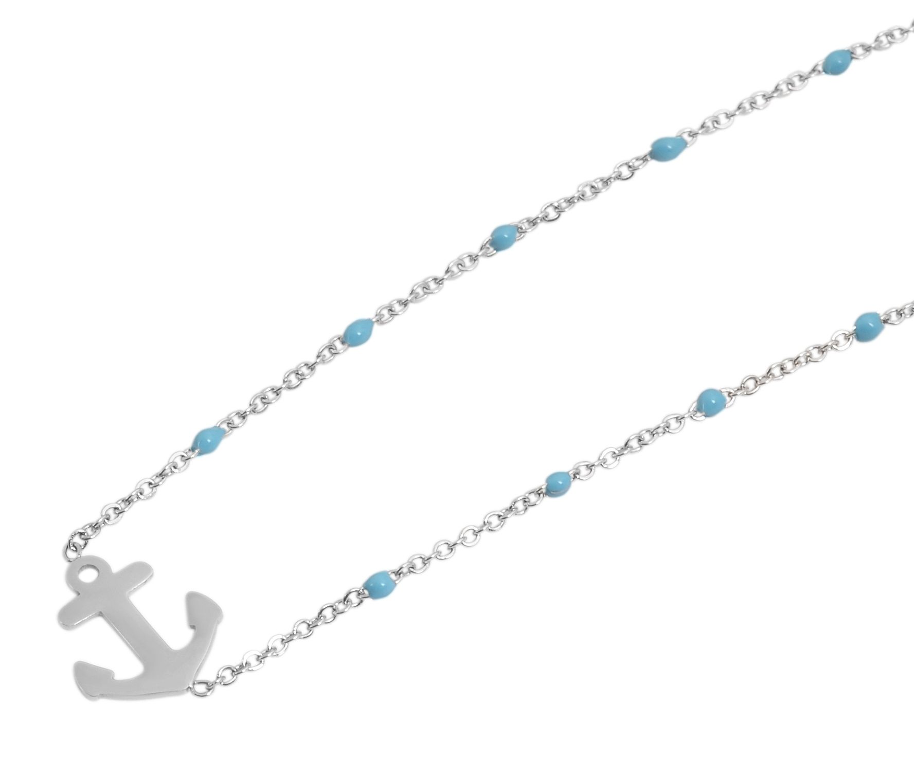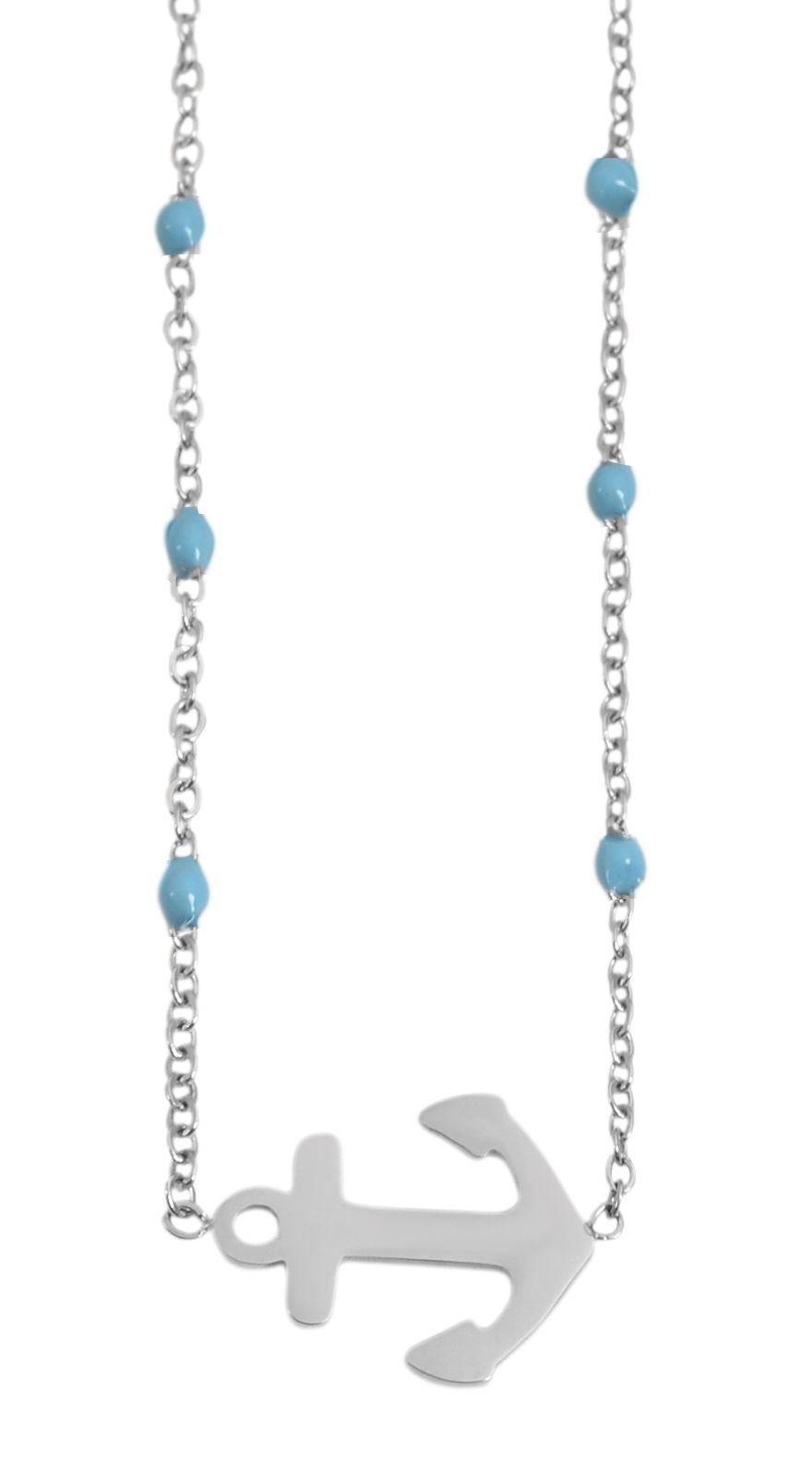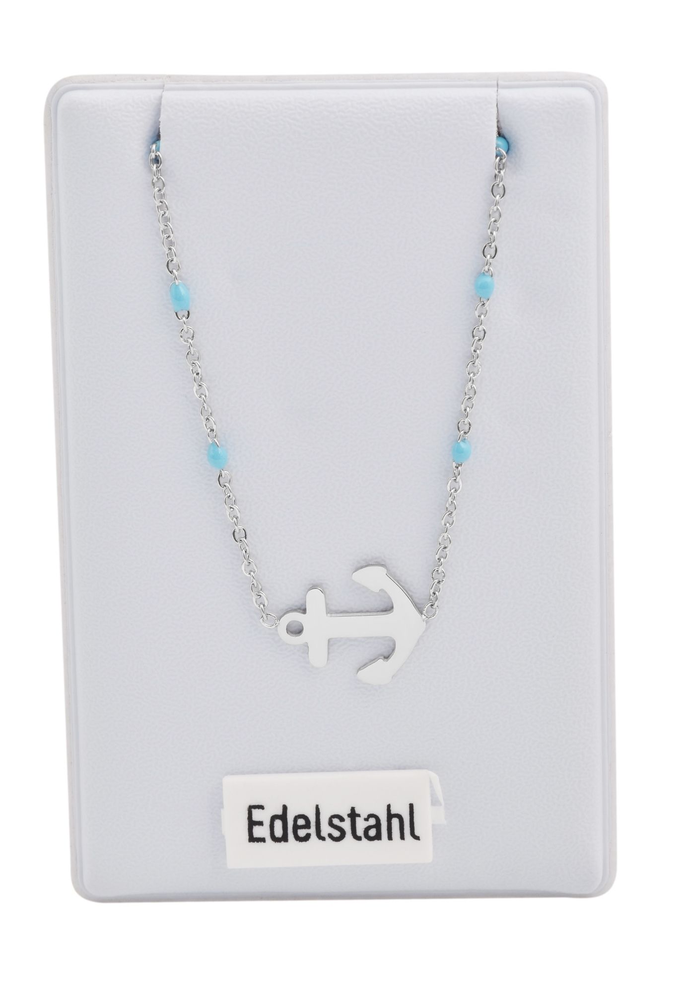 Produktinformationen "Akzent Ankerkette aus Edelstahl, Ankeranhänger, 43+5 cm, silberfarben/hellblau"
